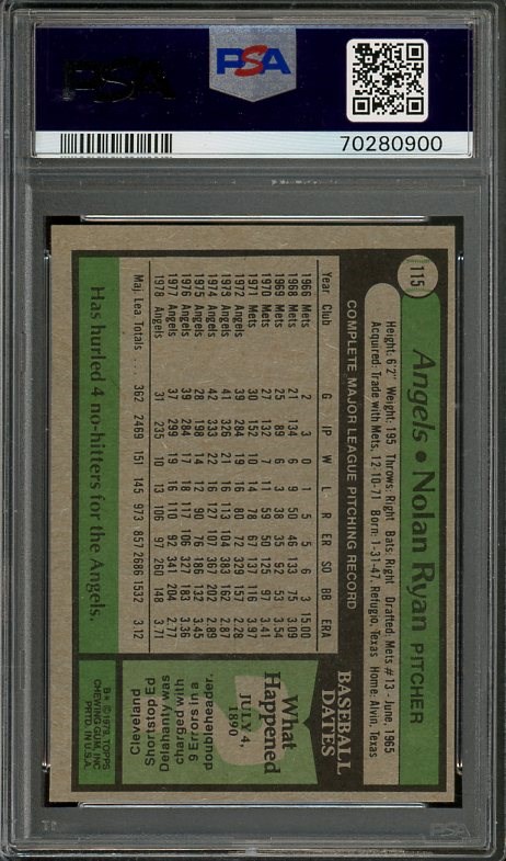 Lot # 23: 1979 Topps Nolan Ryan #115 PSA Mint 9