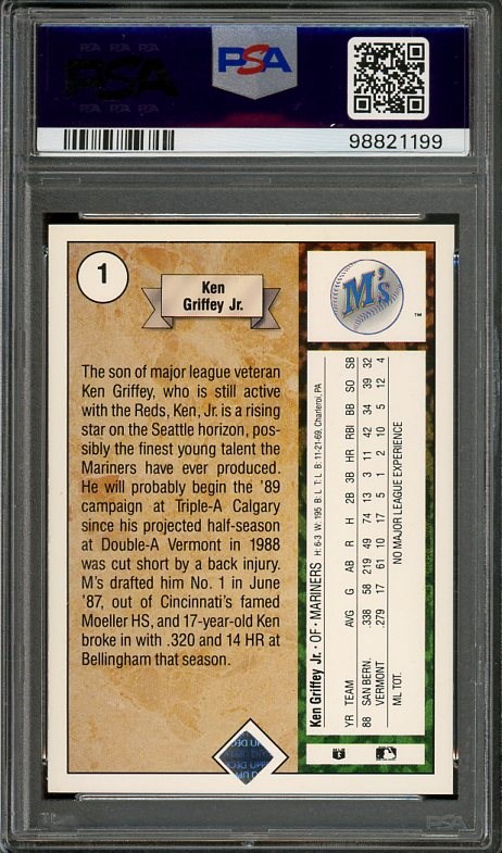 Lot # 25: 1989 Upper Deck Ken Griffey, Jr #1 Autographed with PSA 10 Auto Grade