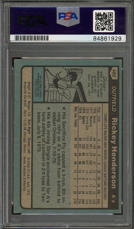 1980 Topps Rickey Henderson RC #482 Autographed PSA/DNA Authentic