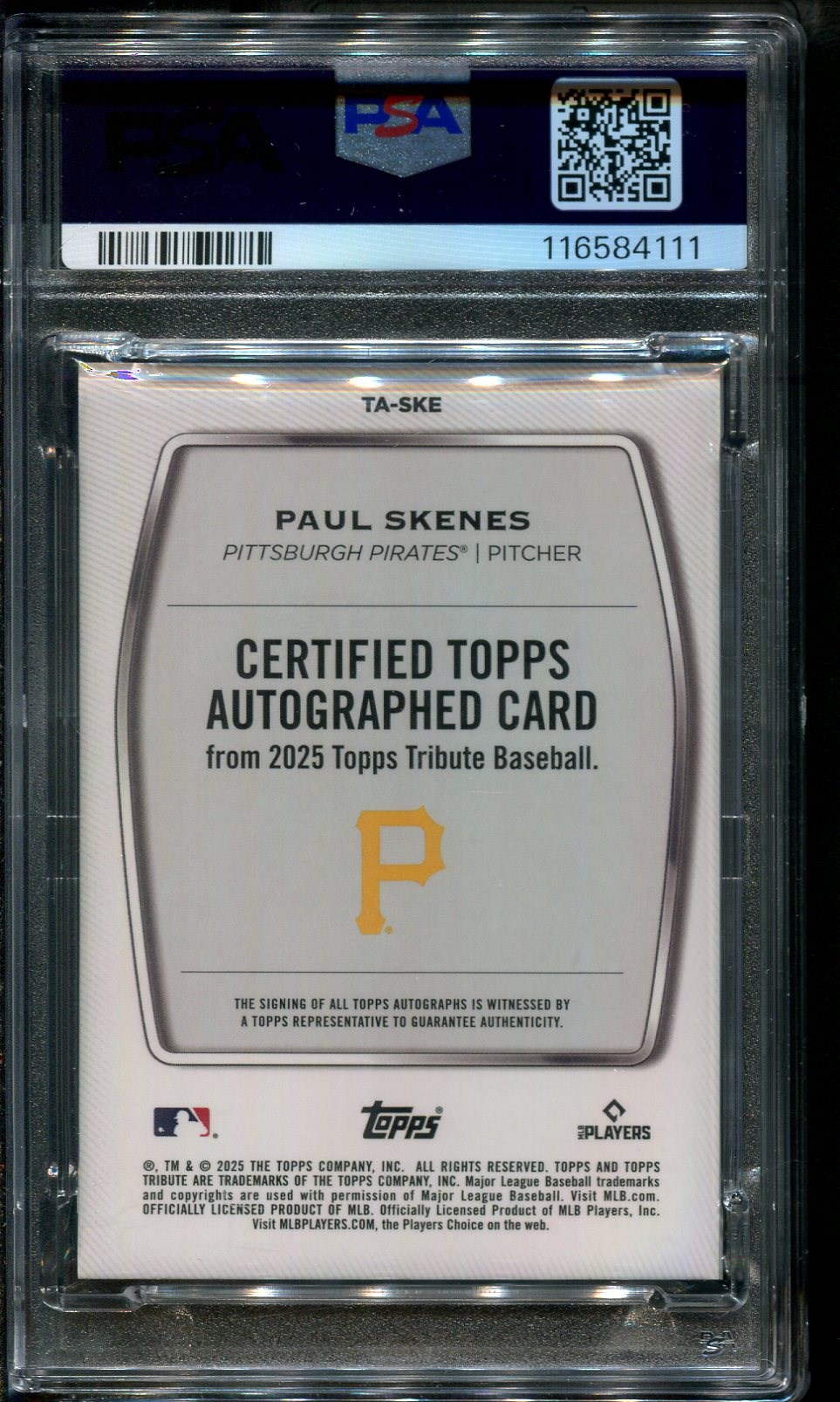 Lot # 30: 2025 Topps Tribute Paul Skenes Autograph Blue #'d/150 PSA 9 with PSA 10 Auto