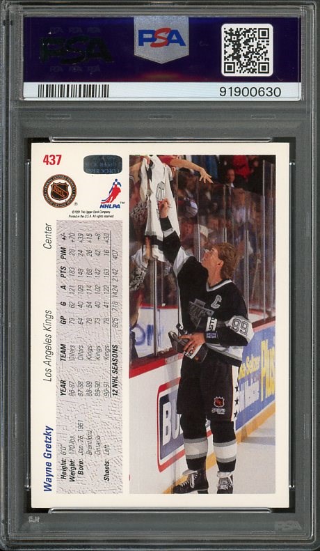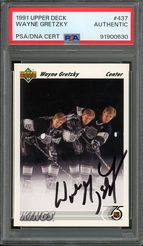 1991 Upper Deck Wayne Gretzky #437 Autographed  PSA/DNA Authentic - "The Great One" Wayne Gretzky signed this 1991 Upper Deck issue in bold, black sharpie.  The signature is a great color match to the card design, making it a highly attractive card.  Grab this one while you can!