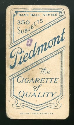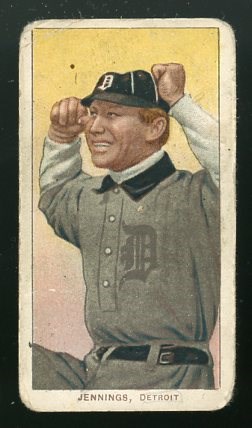1909-11 T206 Hughie Jennings (Piedmont, Both Hands Show) - Card is Fair to Poor with heavy corner wear, a short crease and a stain on the back. Jennings is a Hall of Famer who retired with a .311 batting average and a .543 winning percentage as a manager.