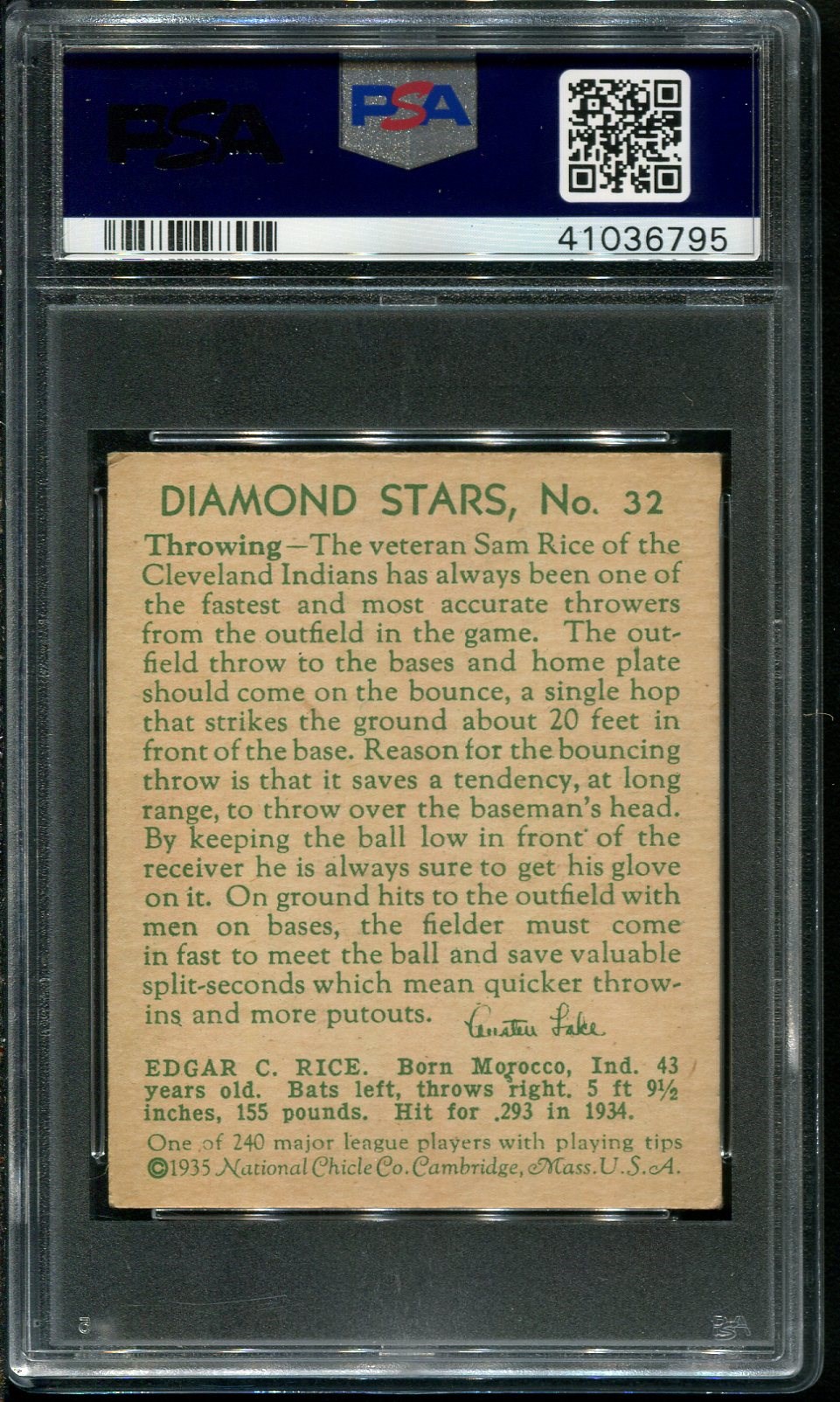 Lot # 49: 1935 Diamond Stars Sam Rice #32 PSA EX+ 5.5
