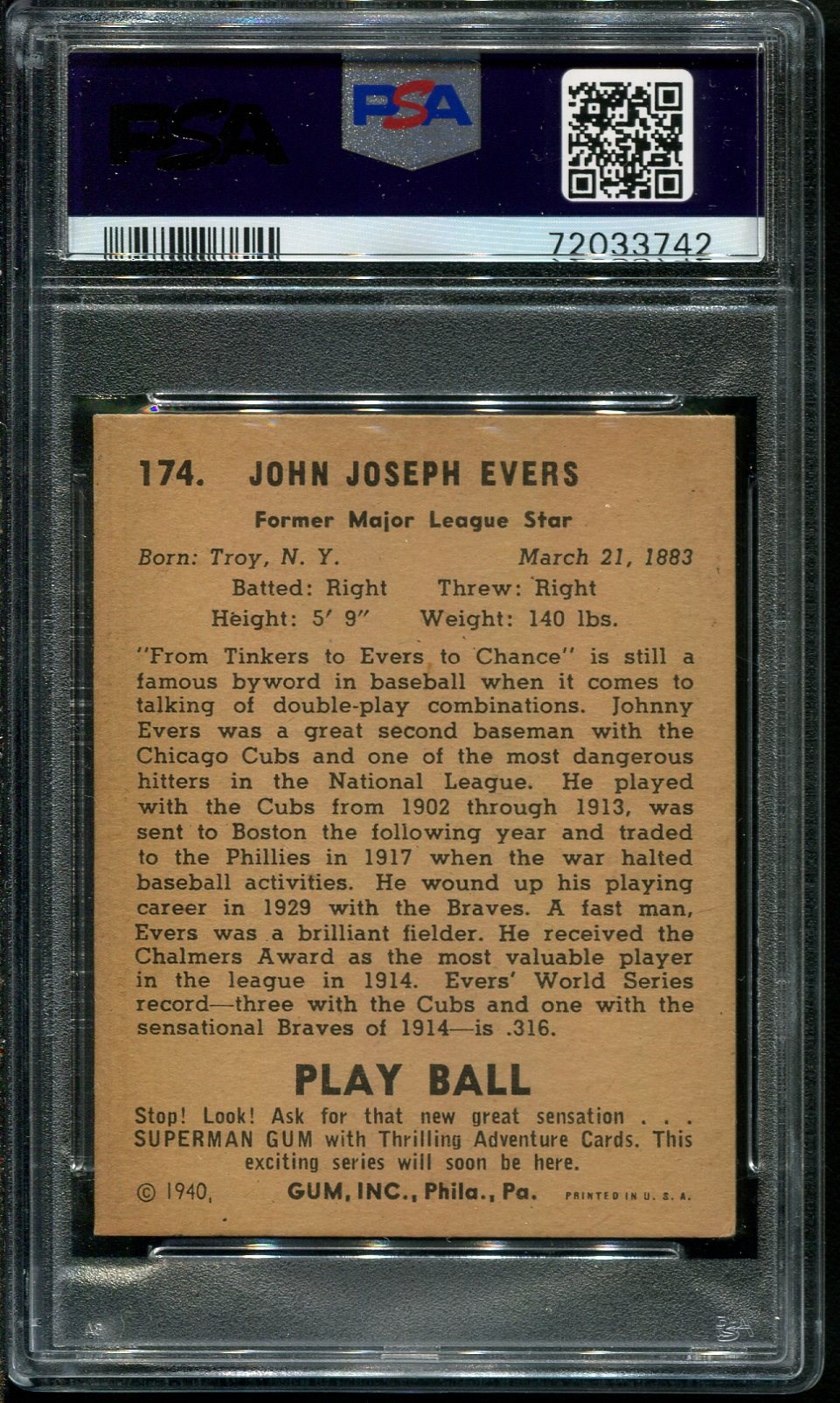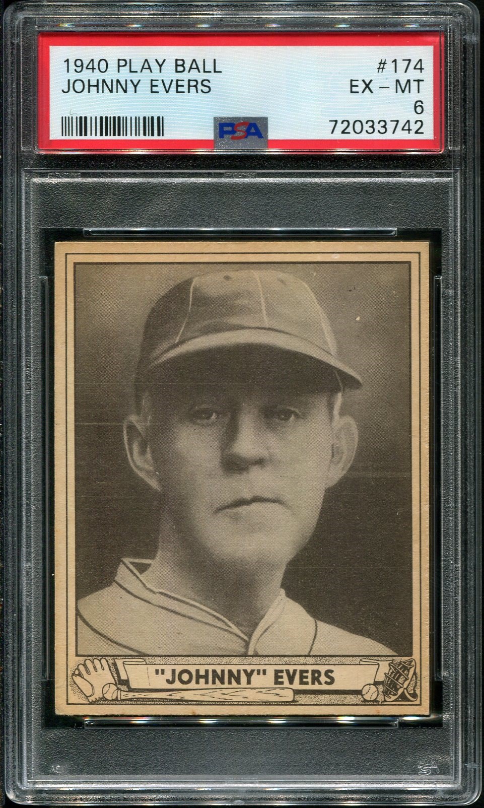 1940 Play Ball Johnny Evers #174  PSA EX/MT 6 - Card is in great condition and comes in a scratch free PSA holder.