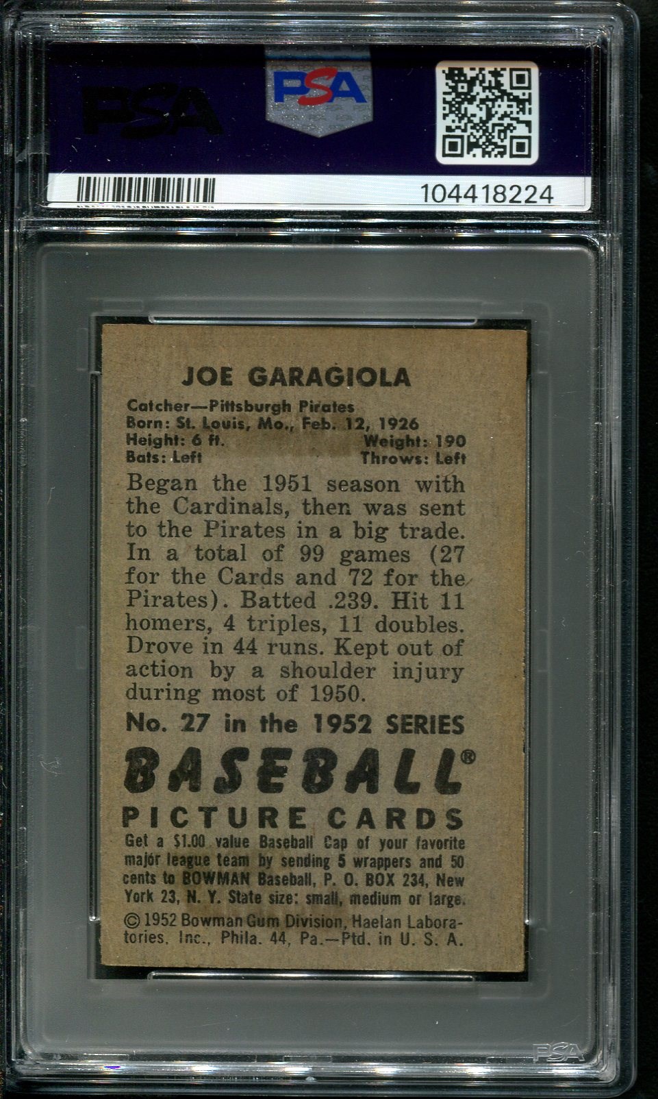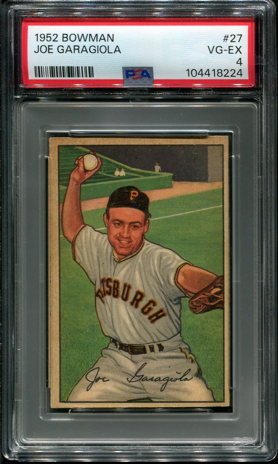 1952 Bowman Joe Garagiola #27 PSA VG/EX 4 - Card was recently graded and comes in a new PSA holder. Card looks nicer than the PSA 4 grade.
