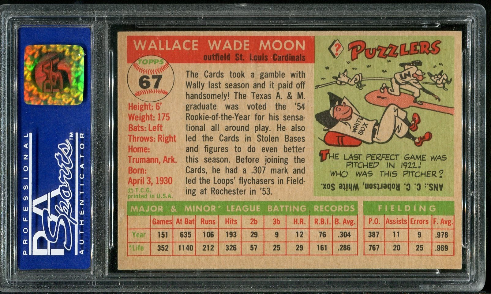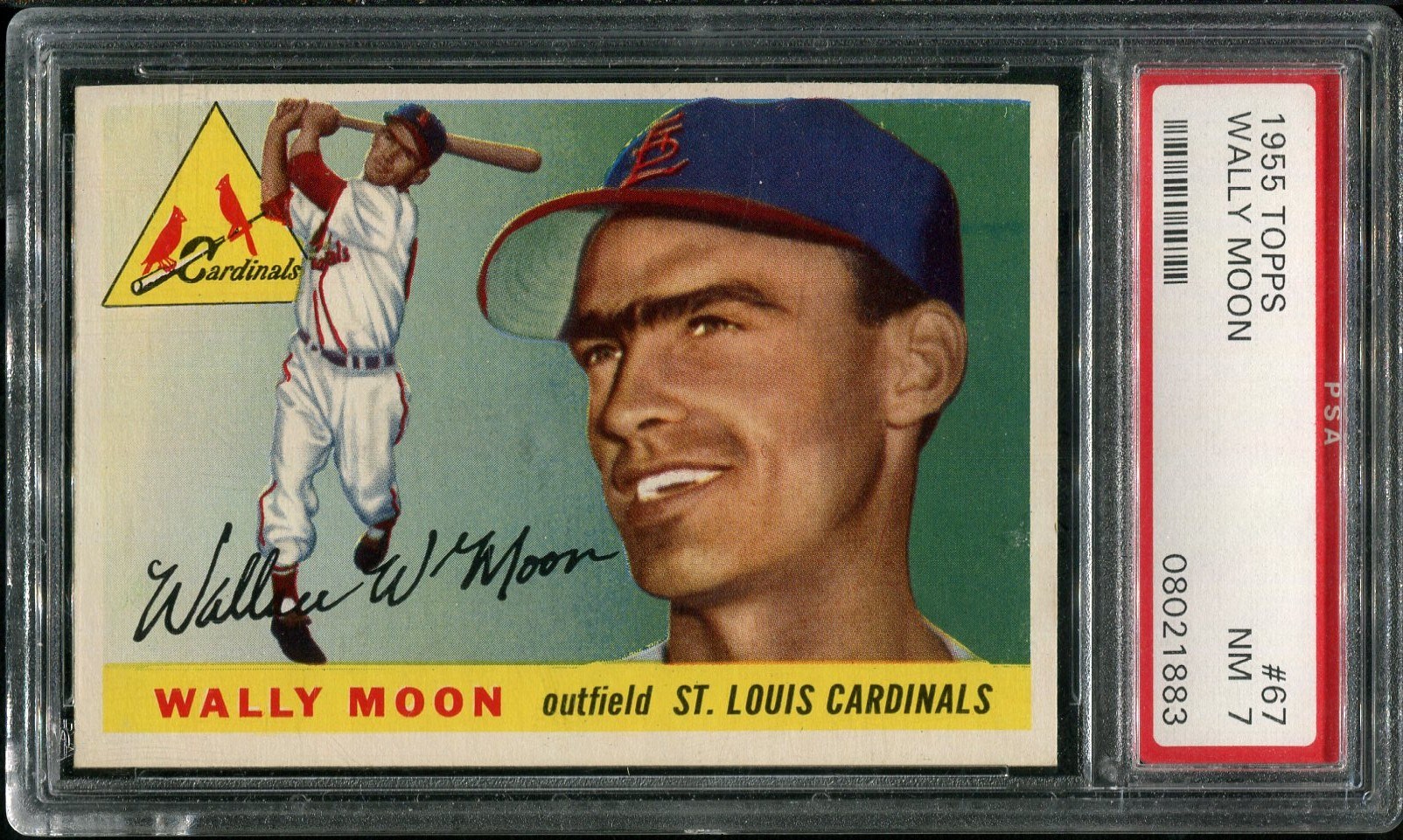 1955 Topps Wally Moon #67 PSA NM 7 - A nice near mint card of Moon that comes in a scratch free PSA holder.
