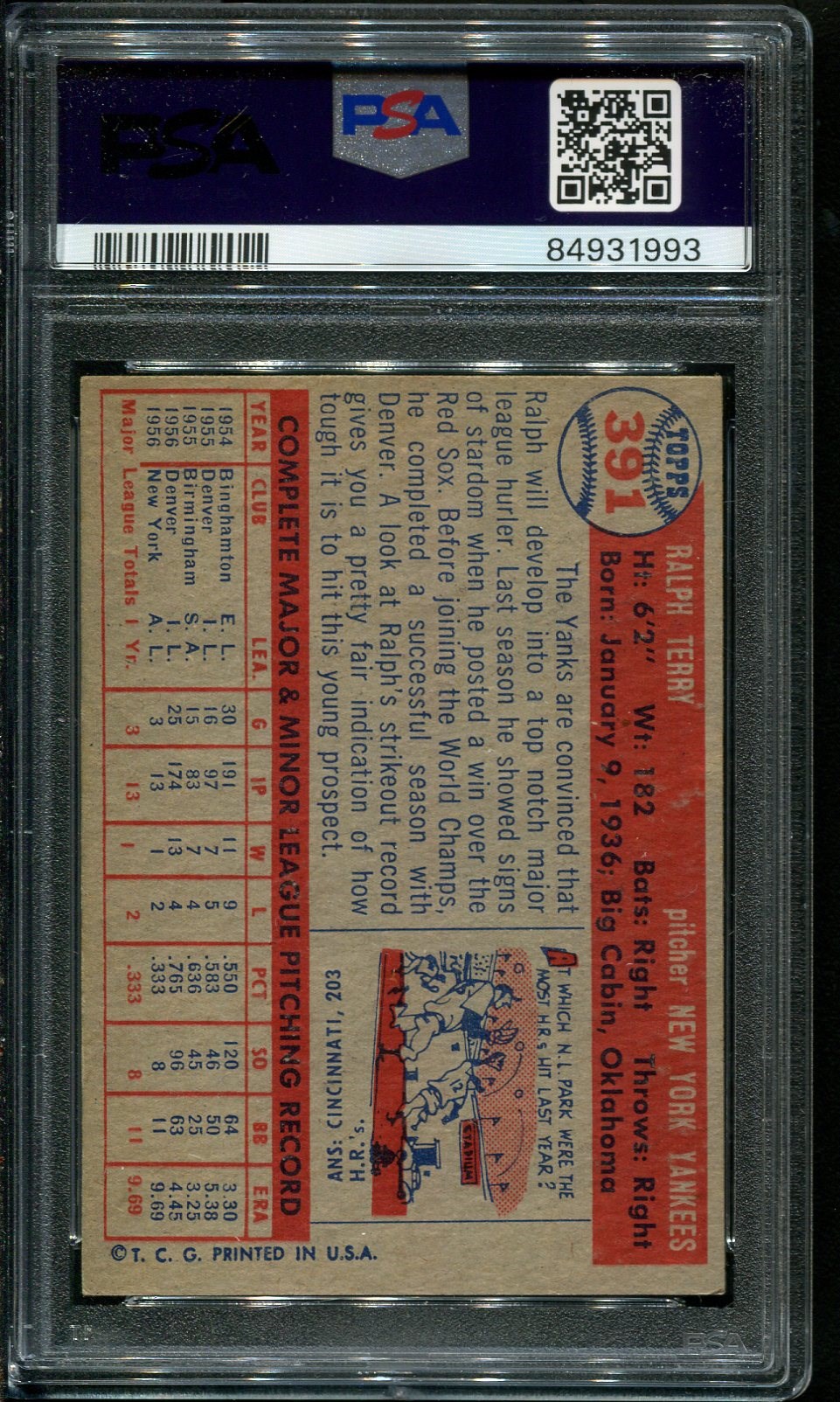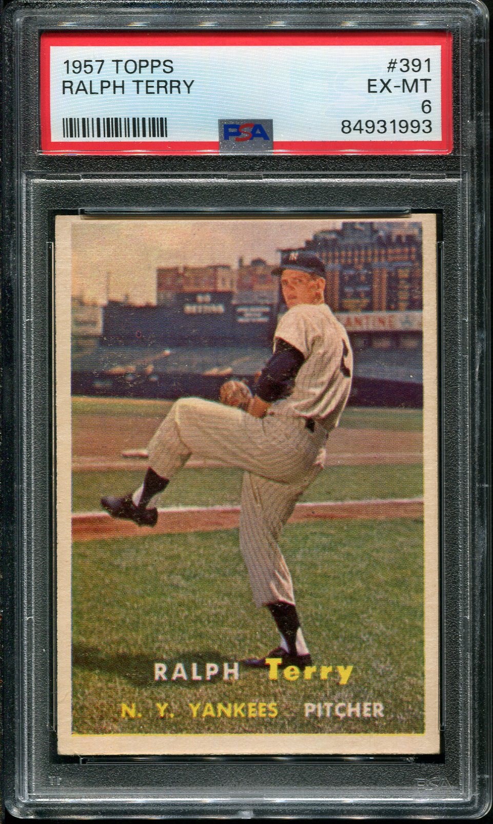 1957 Topps Ralph Terry #391 PSA EX/MT 6 - A solid mid-grade card that comes in a scratch free PSA holder.