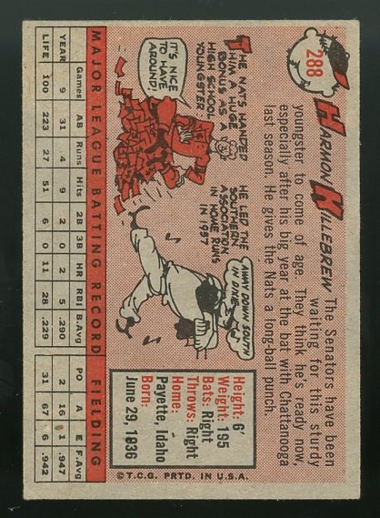 Lot # 88: 1958 Topps Harmon Killebrew #288