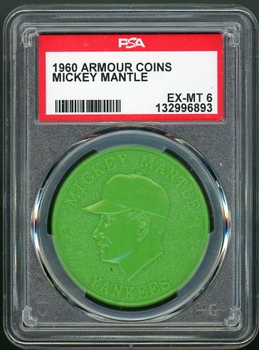 1960 Armour Coins Mickey Mantle (Green) PSA EX/MT 6 - A tough issue of Mantle that starts at a low $40 opening bid.