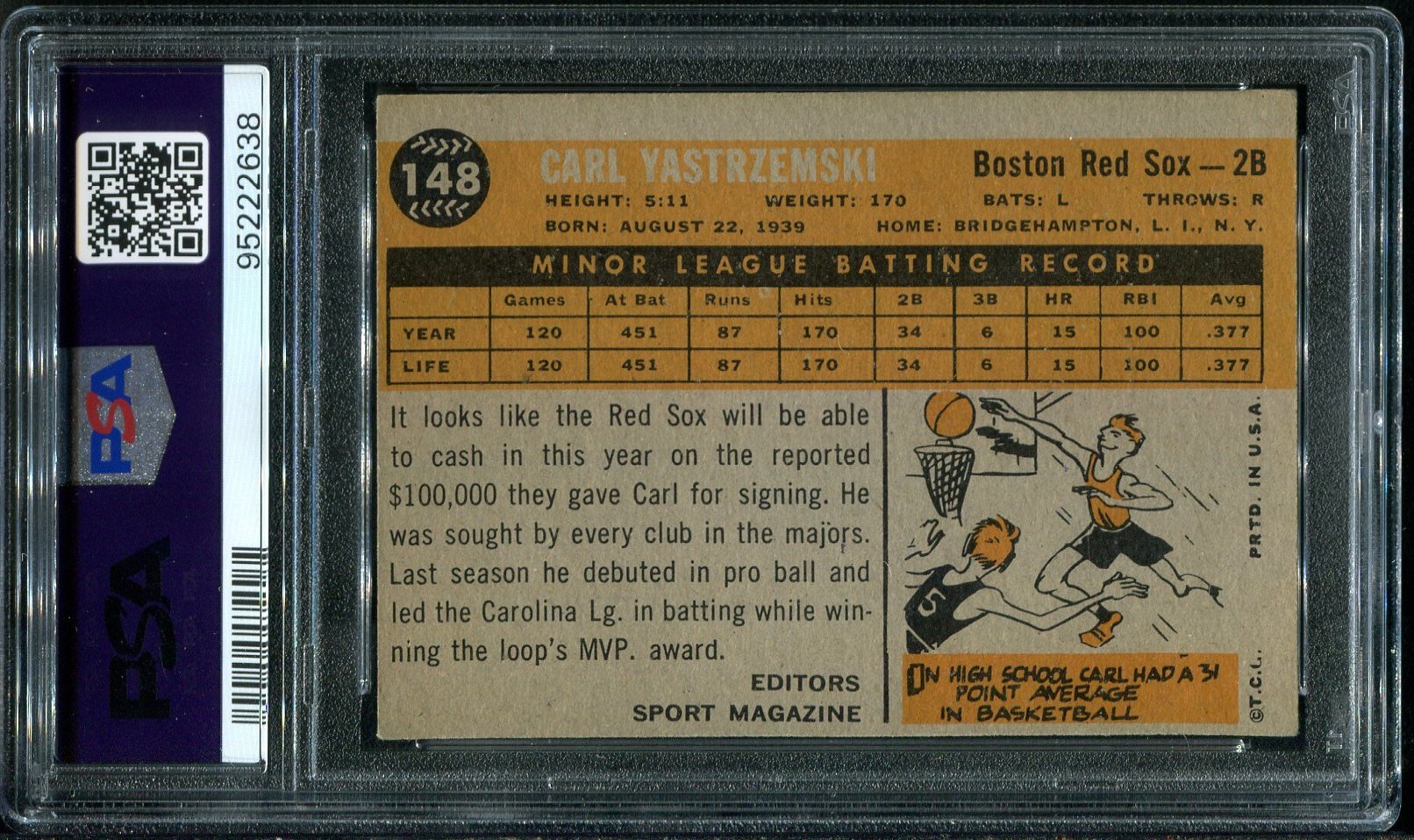 1960 Topps Carl Yastrzemski RC #148  PSA VG/EX 4 - A nicer card than the technical PSA 4 grade.  Card comes in a scratch free PSA holder.