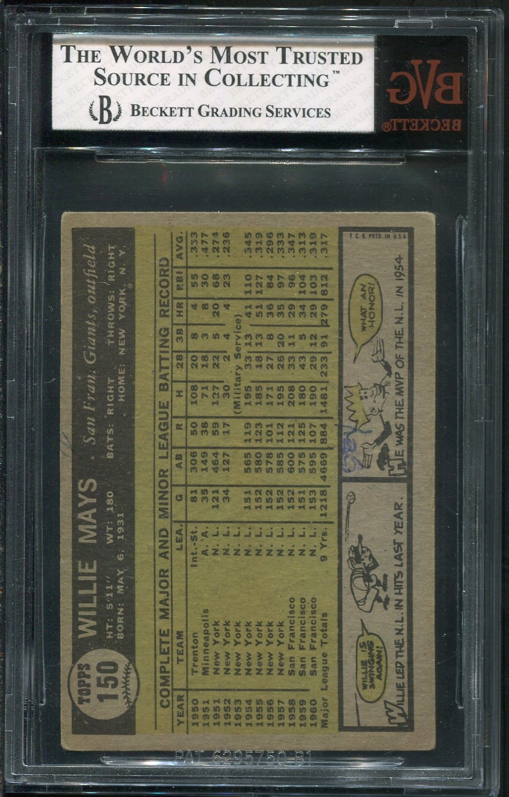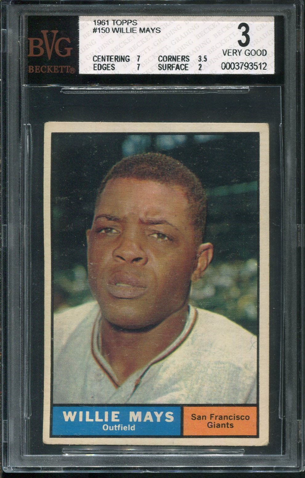 1961 Topps Willie Mays #150  BVG VG 3 - Card has nice centering for the overall grade.  Card comes in a scratch free BGS holder.