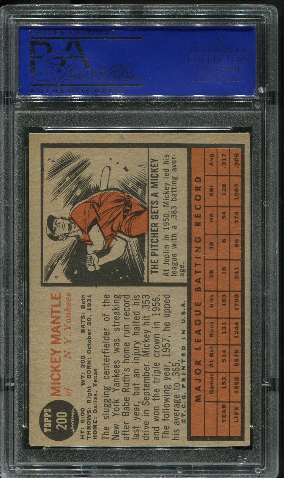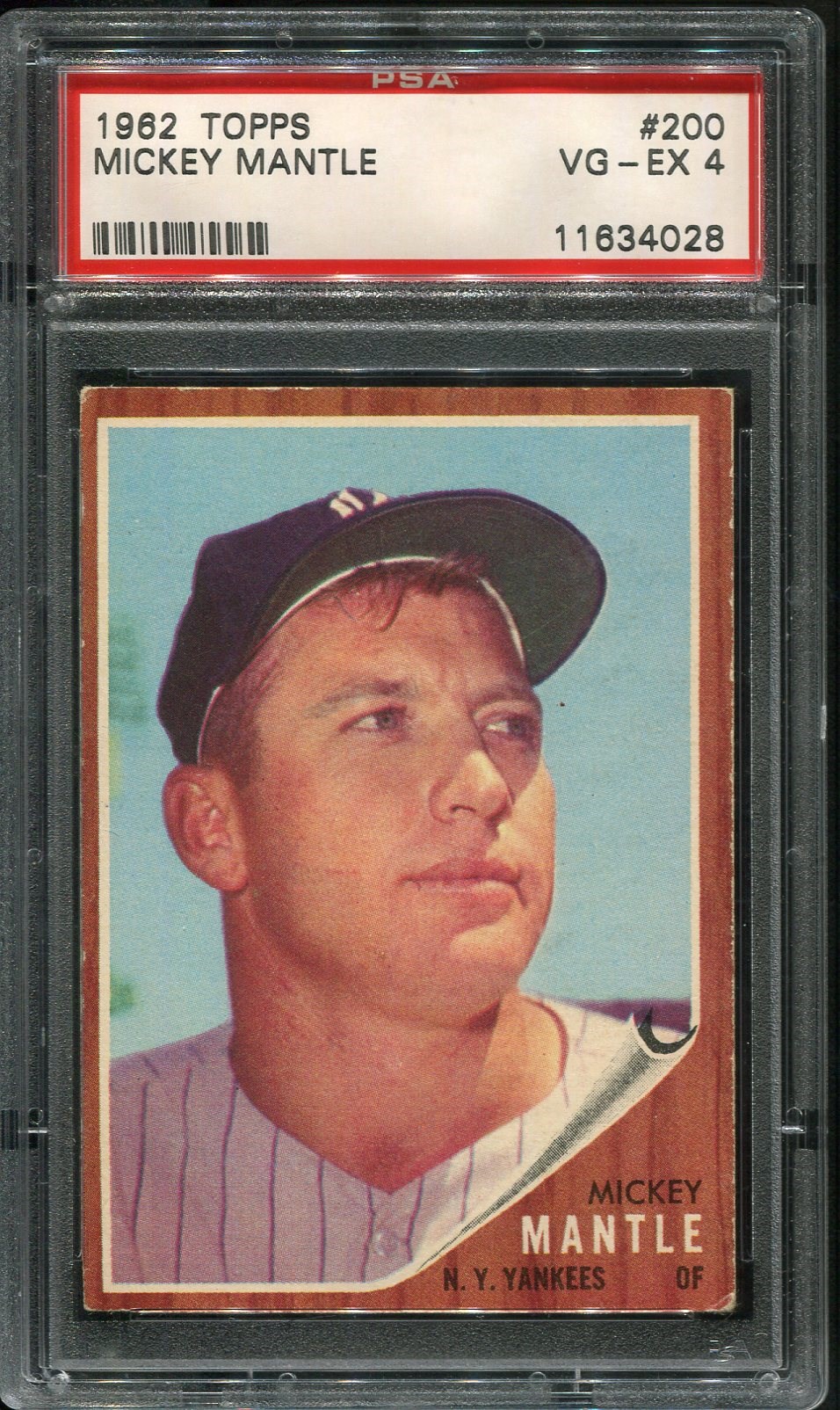 1962 Topps Mickey Mantle #200 PSA VG/EX 4 - A crease free card with enough corner wear to warrant the PSA 4 grade.