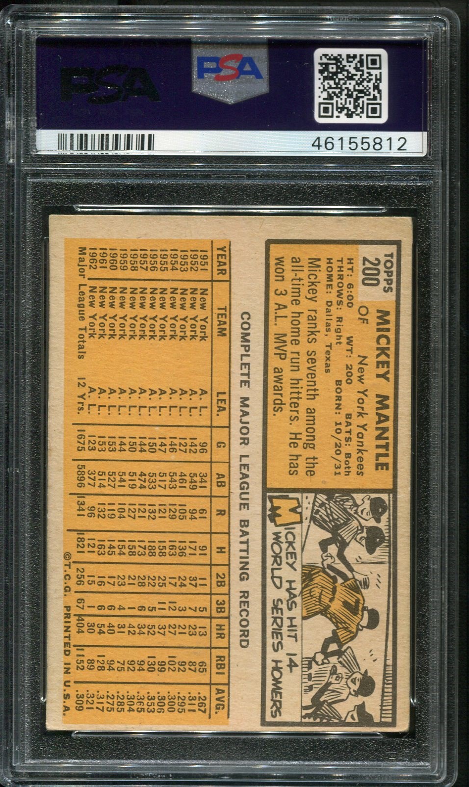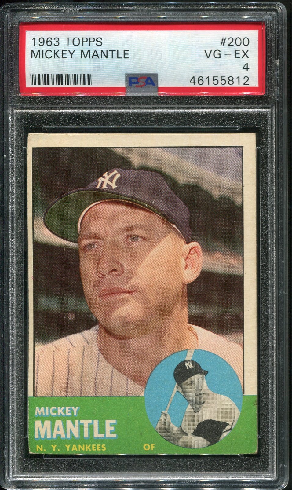 1963 Topps Mickey Mantle #200  PSA VG/EX 4 - A nice mid grade Mantle, crease free with strong color.  Card comes in a scratch free PSA holder.