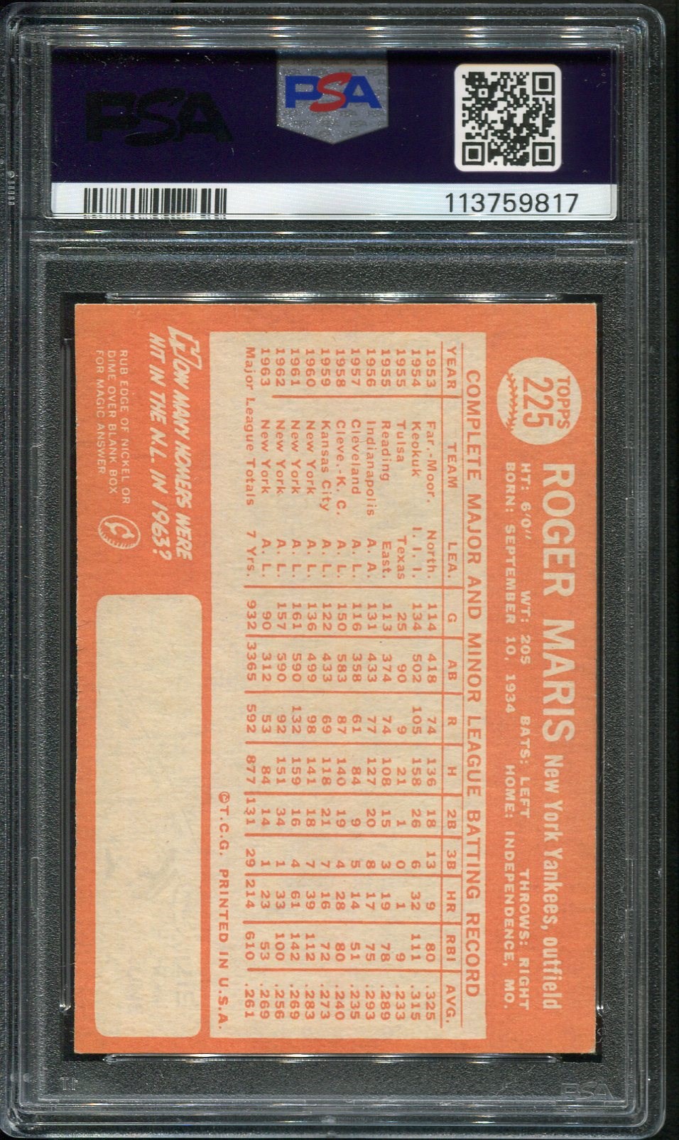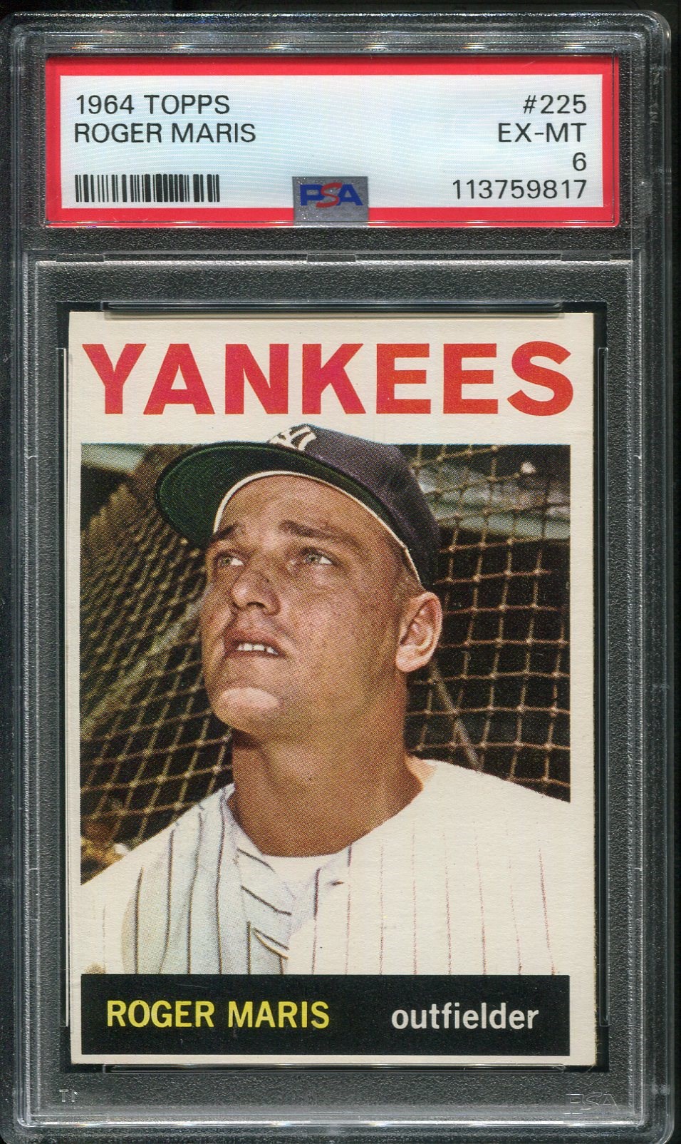 1964 Topps Roger Maris #225 PSA EX/MT 6 - Sharp corners, strong color and registration highlight this 1965 Maris issue. Card was recently graded and comes in a new PSA holder.