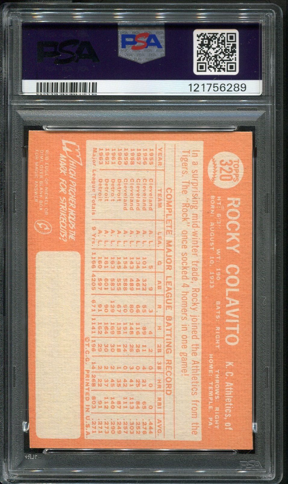 1964 Topps Rocky Colavito #320  PSA NM/MT 8 - A super nice card with near perfect centering and registration. Card was recently graded and comes in a new PSA holder.
