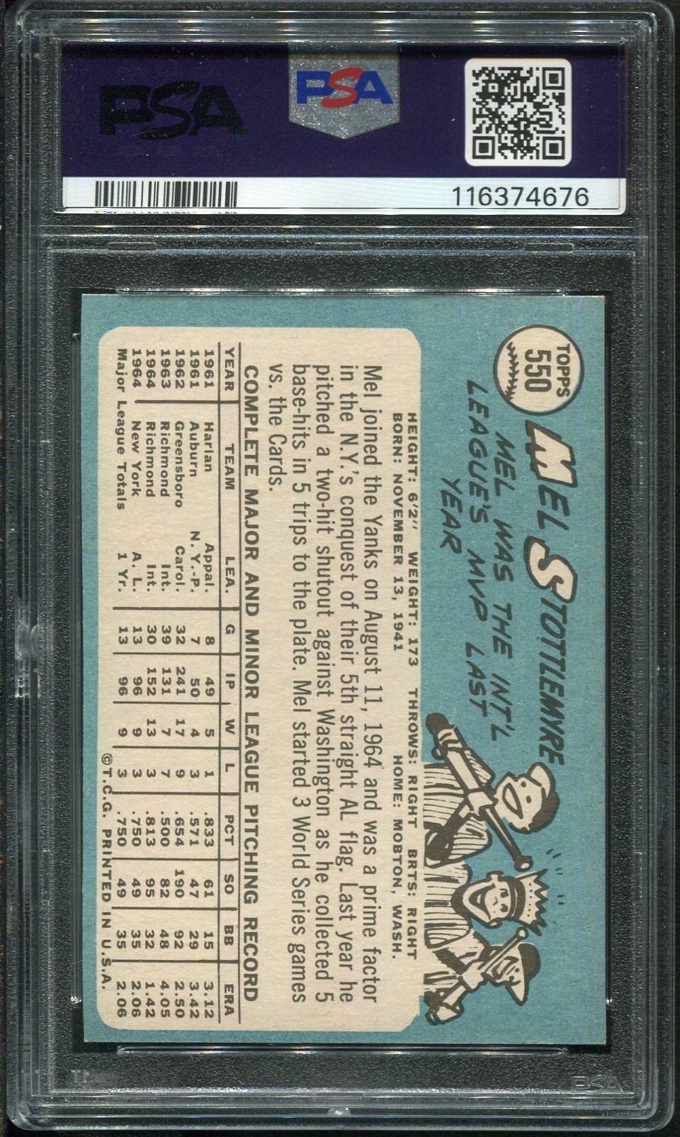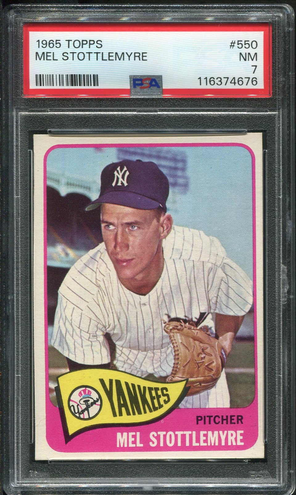 1965 Topps Mel Stottlemyre RC #550  PSA NM 7 - Card was recently graded and comes in a new PSA holder.