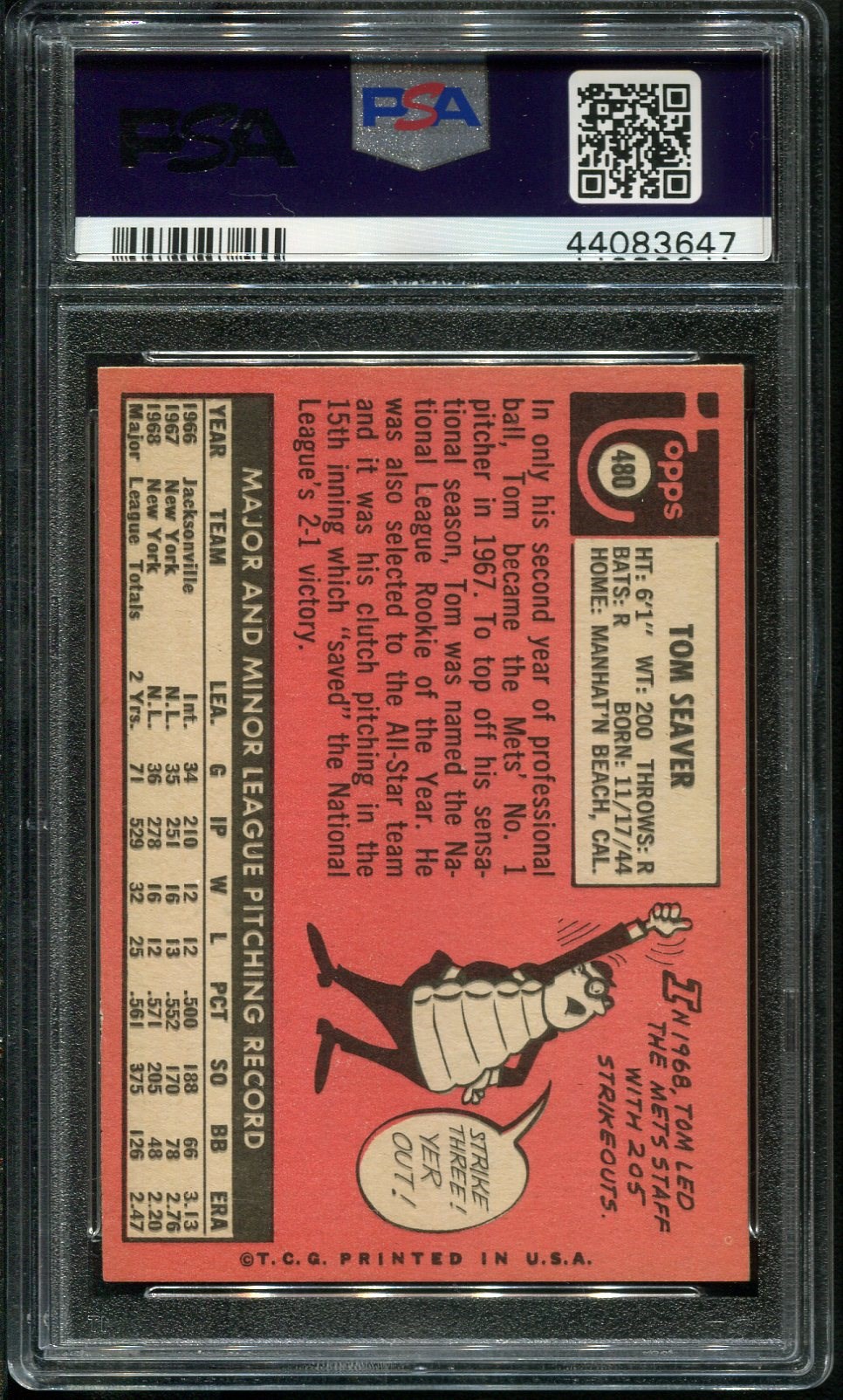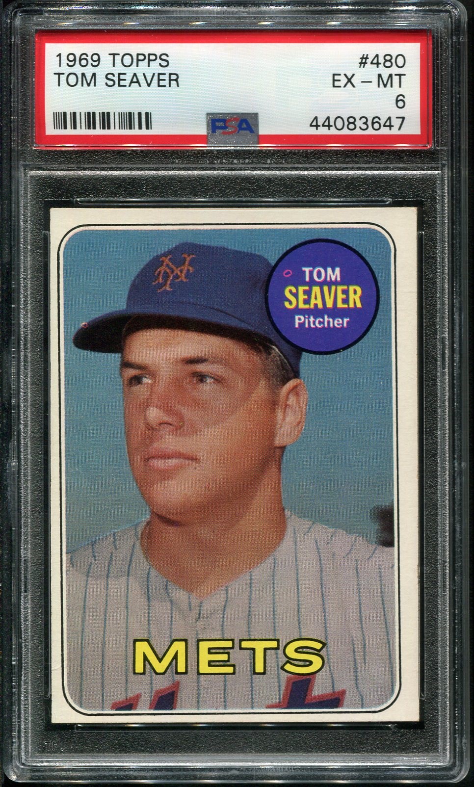 1969 Topps Tom Seaver #480  PSA EX/MT 6 - Sharp corners and original color highlight this Seaver card, from the 1969 Championship team.