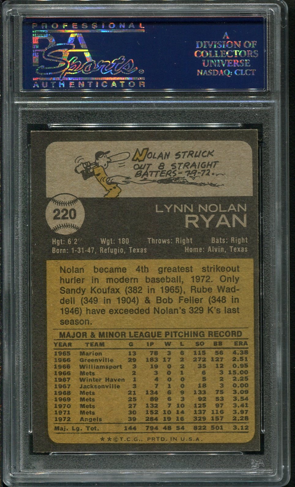 1973 Topps Nolan Ryan #220  PSA NM 7 - A sharp card with original color and strong corners.  Card comes in a scratch free PSA holder.