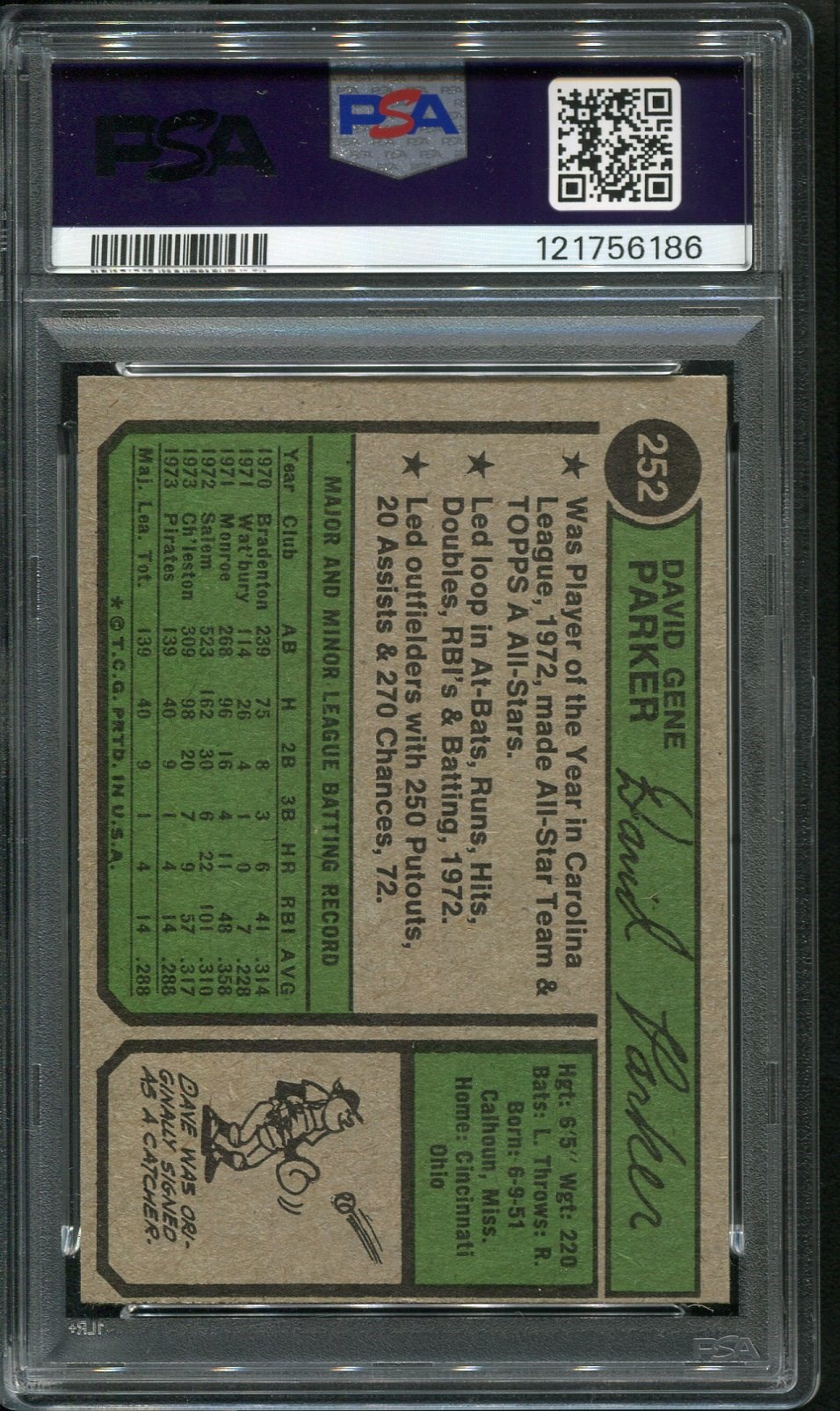 1974 Topps Dave Parker RC #252 PSA NM 7 - A key card in the 1974 Topps set, Parker's rookie has been in high demand since he was inducted in the Hall of Fame.