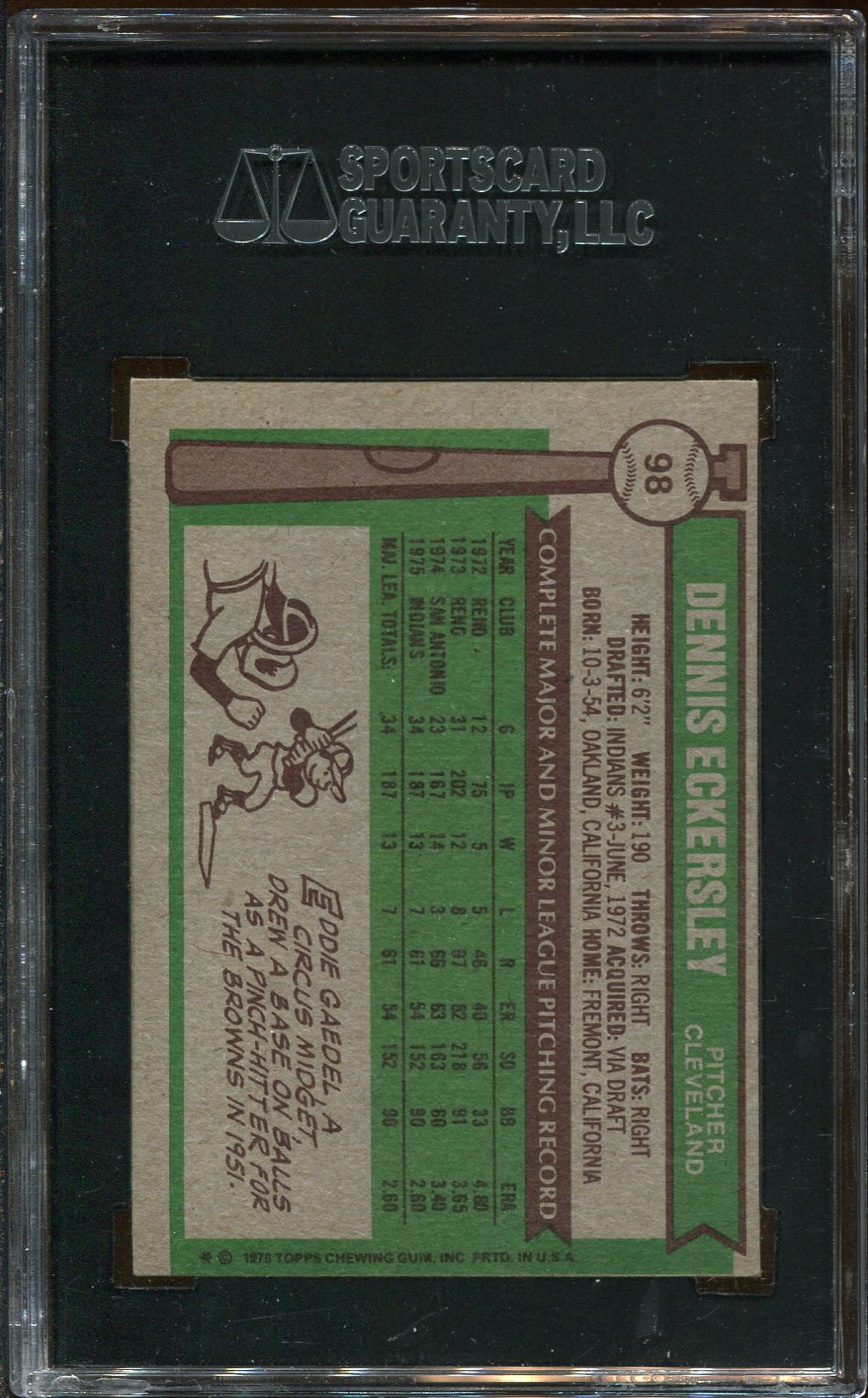 1976 Topps Dennis Eckersley RC #98  SGC NM 7 - Eckersley's rookie is one of the key cards in the 1976 Topps set.  Here is a near mint 7 graded by SGC.
