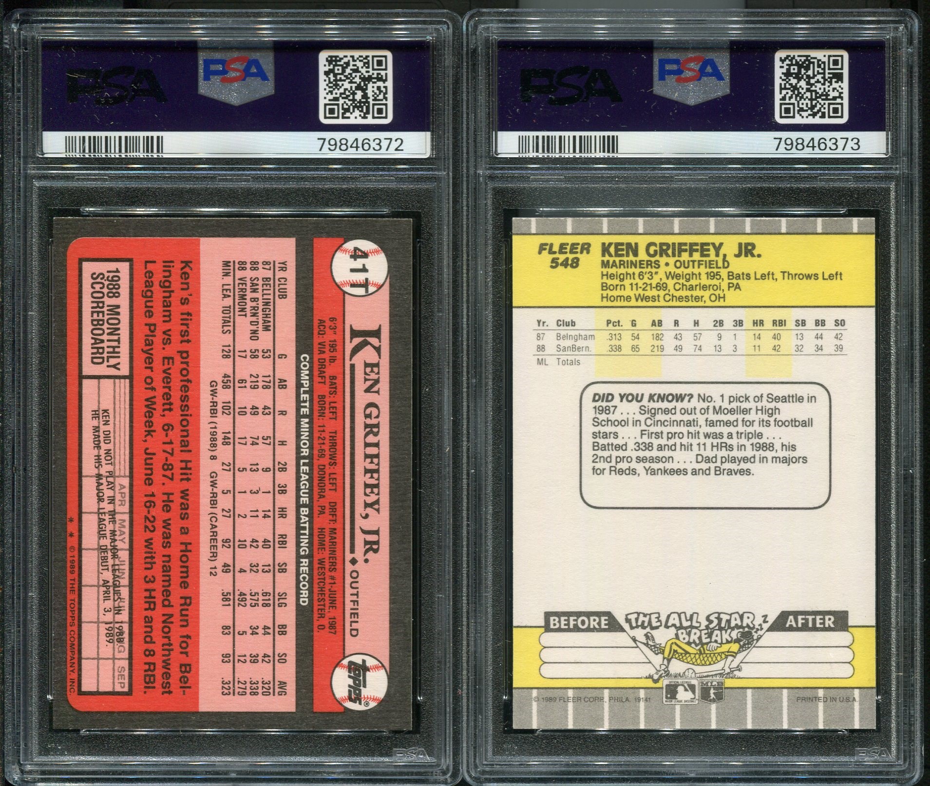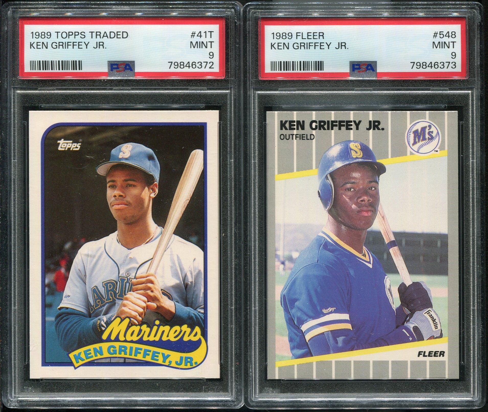 Ken Griffey, Jr. 1989 Fleer RC #548 and 1989 Topps Traded RC #41T Both in PSA Mint 9's - Both cards come in scratch free PSA holders.