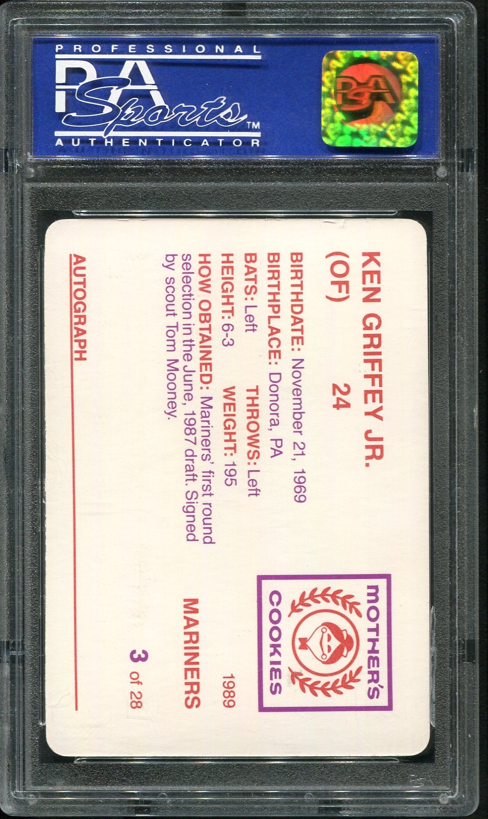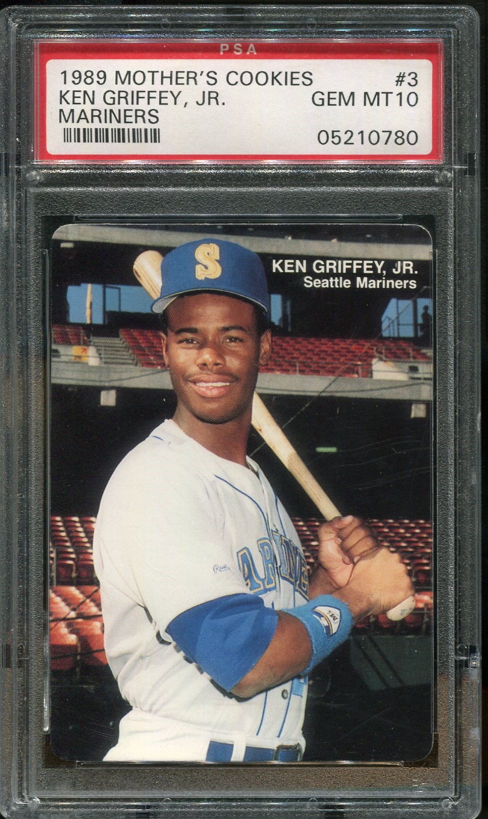 1989 Mother's Cookies Ken Griffey, Jr. RC #3 PSA Gem Mint 10 - When compared to the mainstream manufacturers, this is a much tougher rookie card to find of Griffey, Jr.