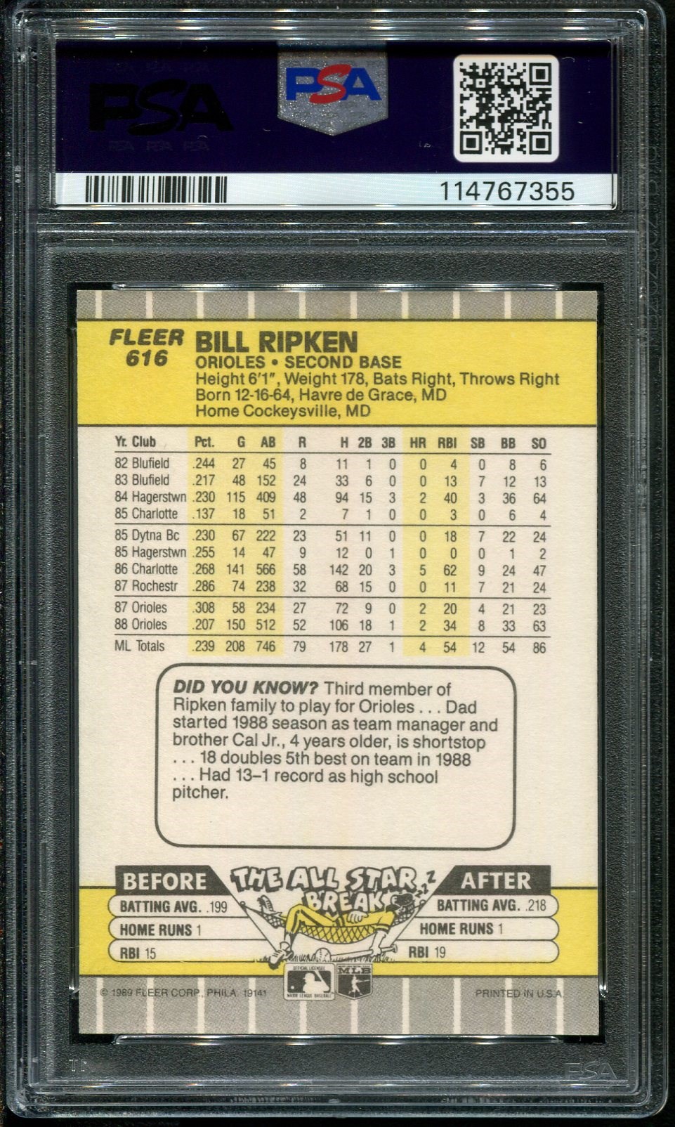 Lot # 198: 1989 Fleer Billy Ripken RC #616 (FF Error) PSA NM/MT 8