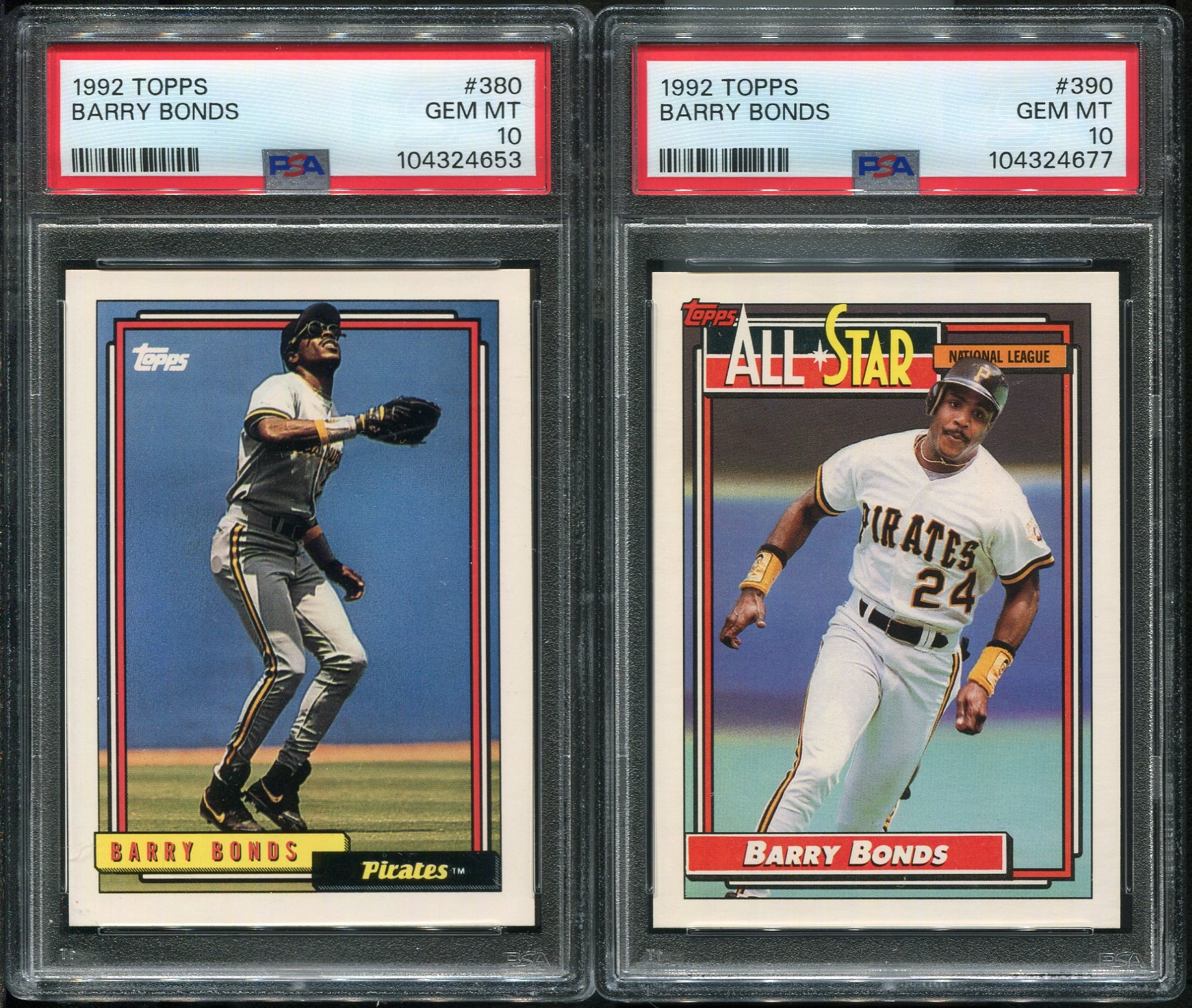 1992 Topps Barry Bonds #380 and 1992 Topps All-Star #390 Both PSA Gem Mint 10's - Both cards were recently graded and come in new PSA holders.