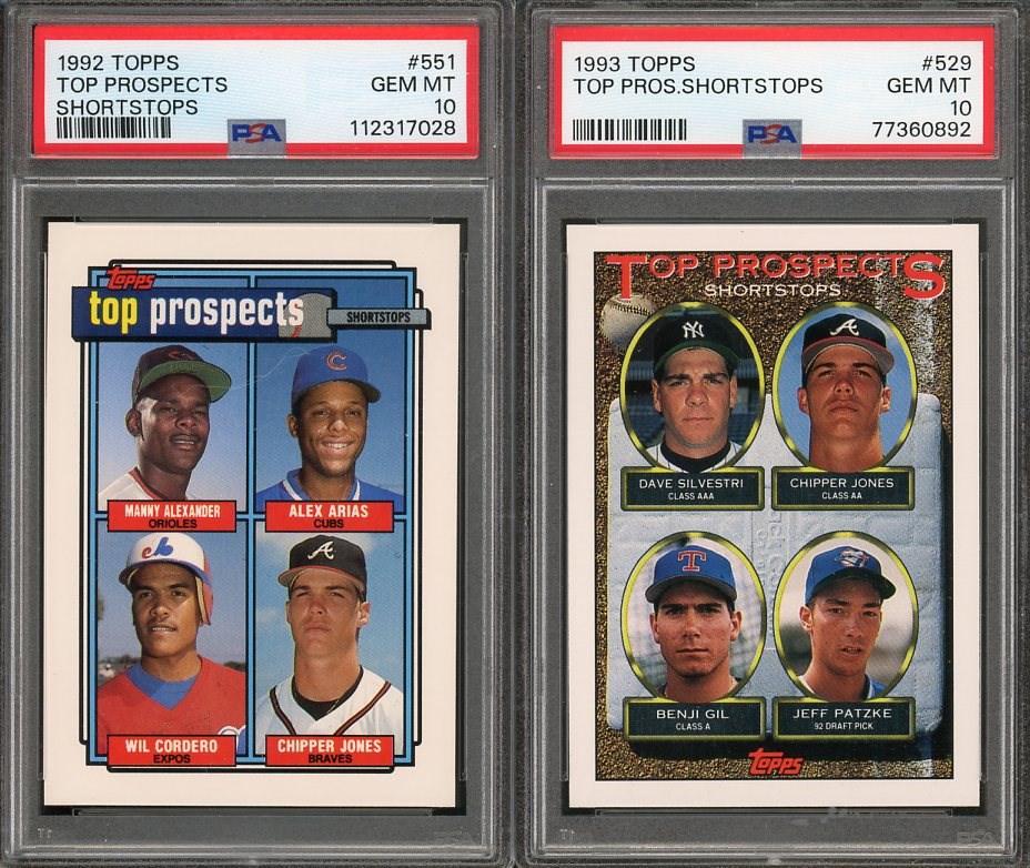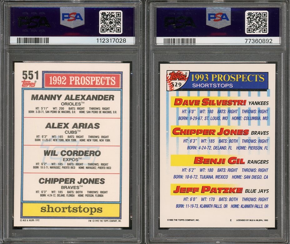 Chipper Jones 1992 Topps #551 and 1993 Topps #529 Both in PSA Gem Mint 10's