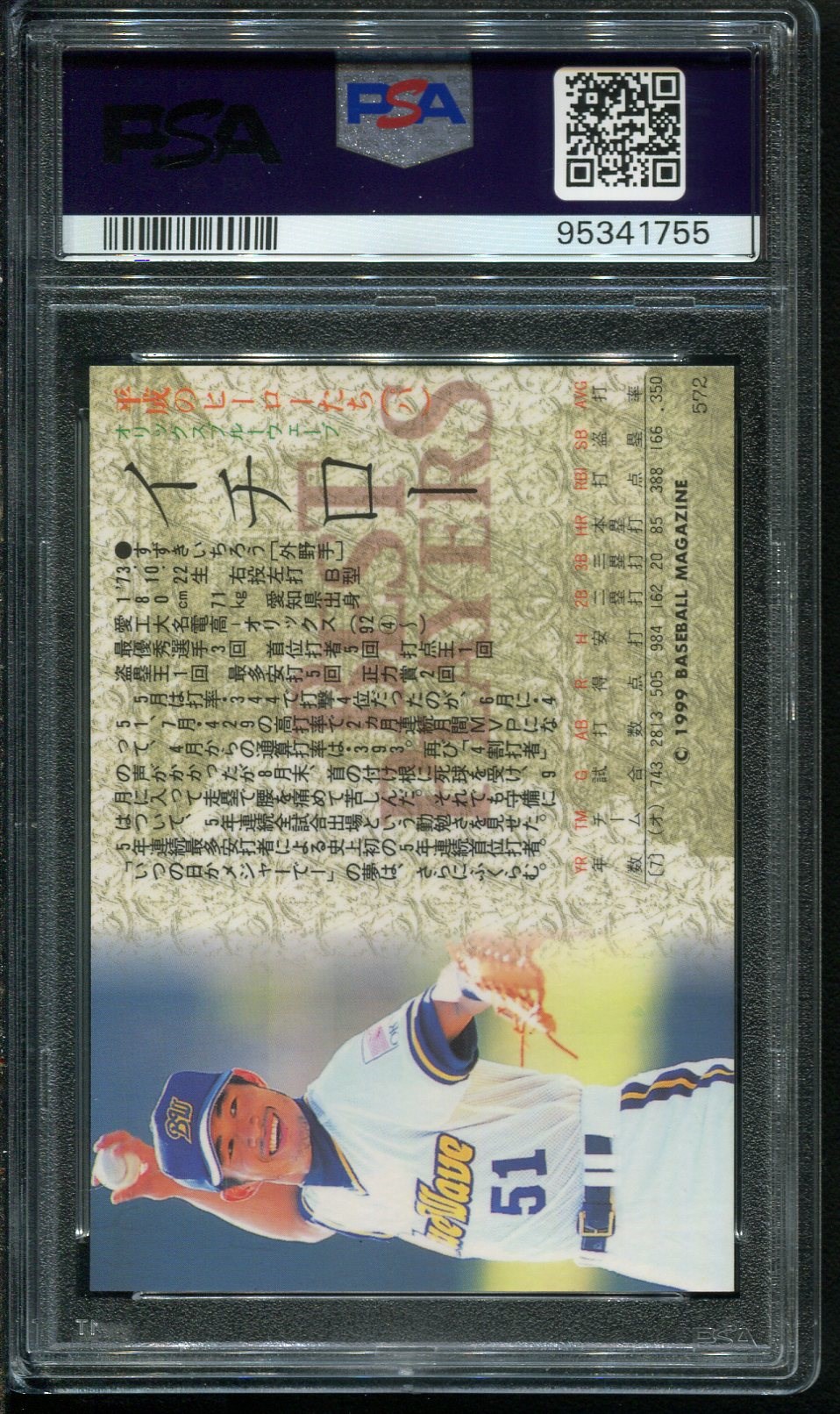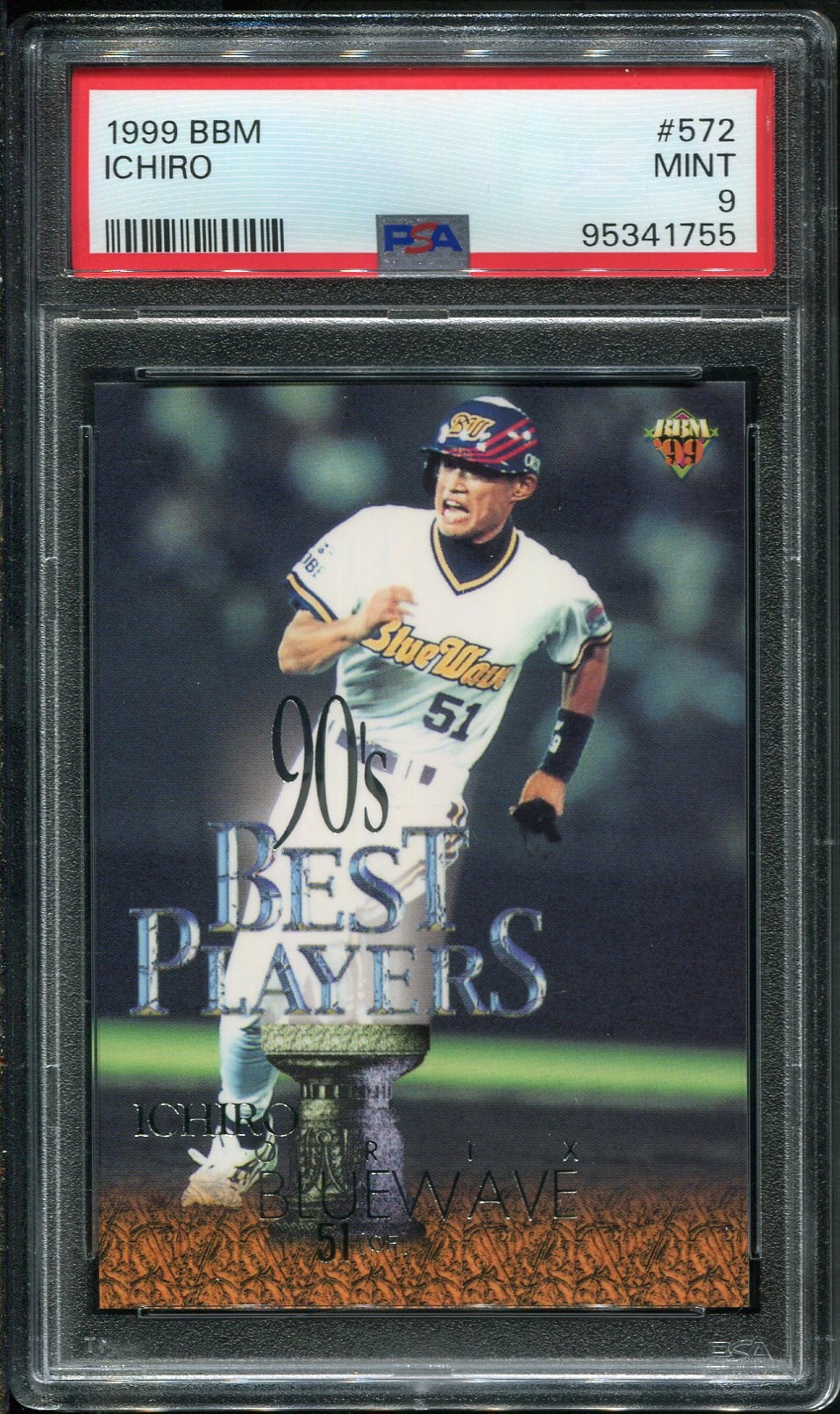 1999 BBM Ichiro Suzuki #572  PSA Mint 9 - A low population card not often seen.  Minimum bid starts at below the grading fee!