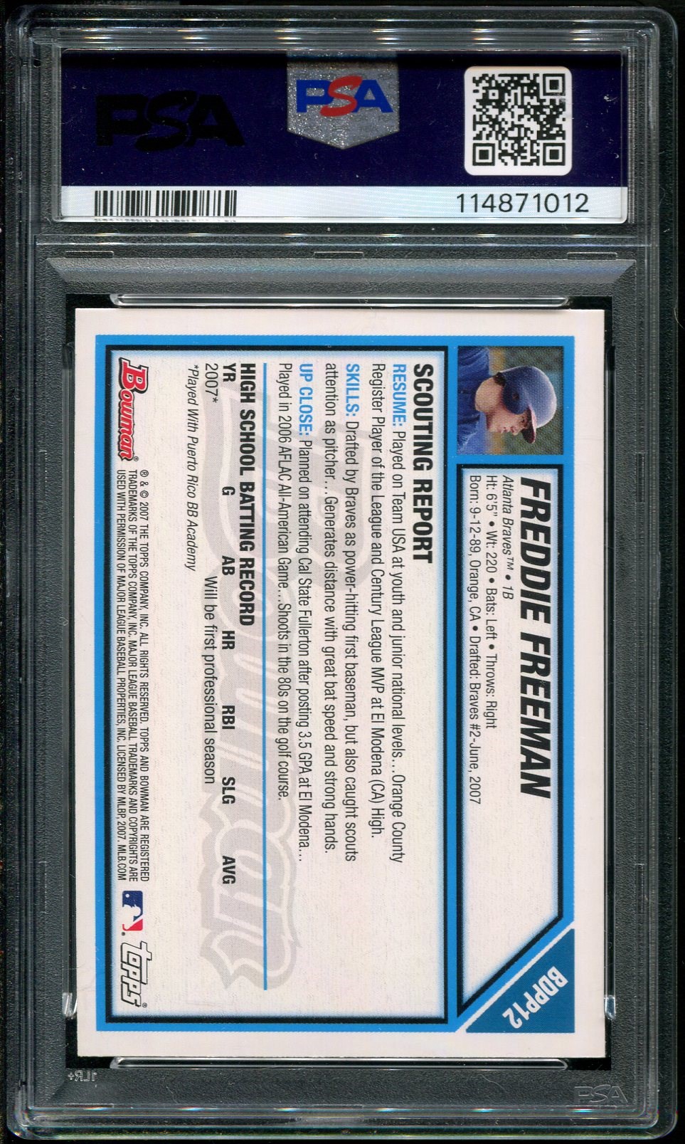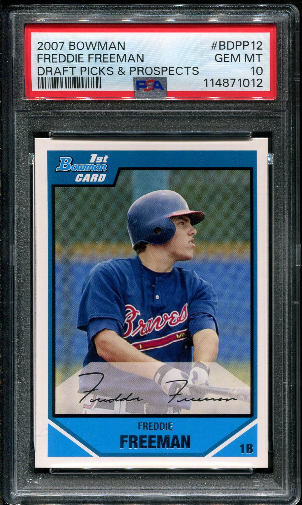 2007 Bowman Draft Picks Freddie Freeman RC #BDPP12  PSA Gem Mint 10 - A red hot rookie card of Freeman who now has three World Series rings.  Card was recently graded and comes in a new PSA holder.