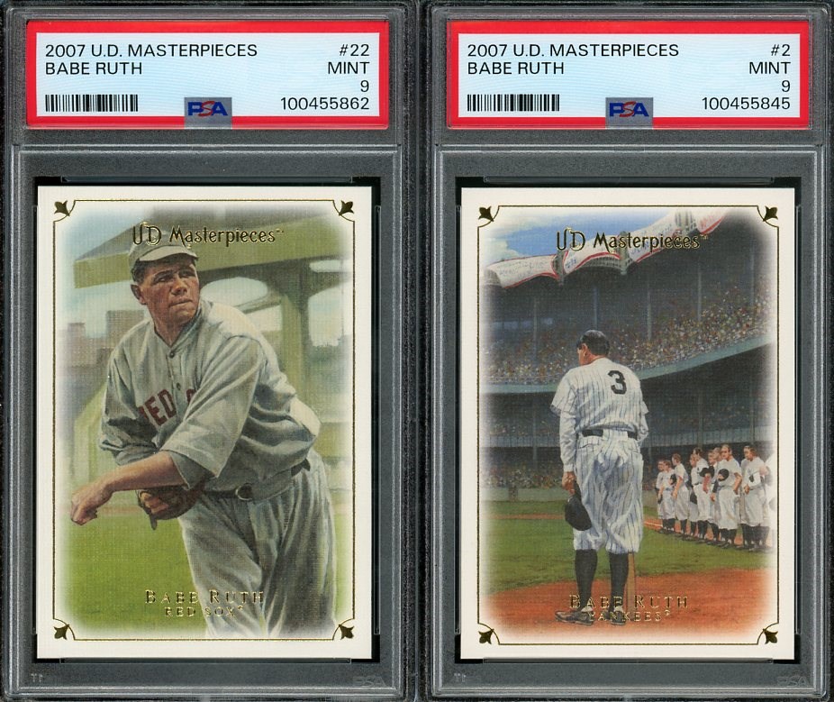 Babe Ruth 2007 Upper Deck Masterpieces #2 and #22  Both PSA Mint 9's  Both cards were recently graded and come in new PSA holders.
