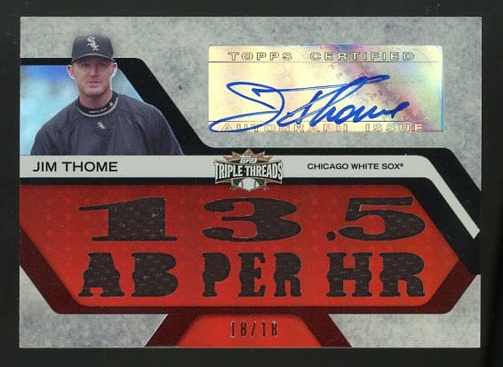 2008 Topps Triple Threads Jim Thome 10 Piece Relic Autograph  #'d/18 - A great looking card of HOFer Jim Thome featuring multiple game used jersey relics and his autograph.  Card in NM/MT