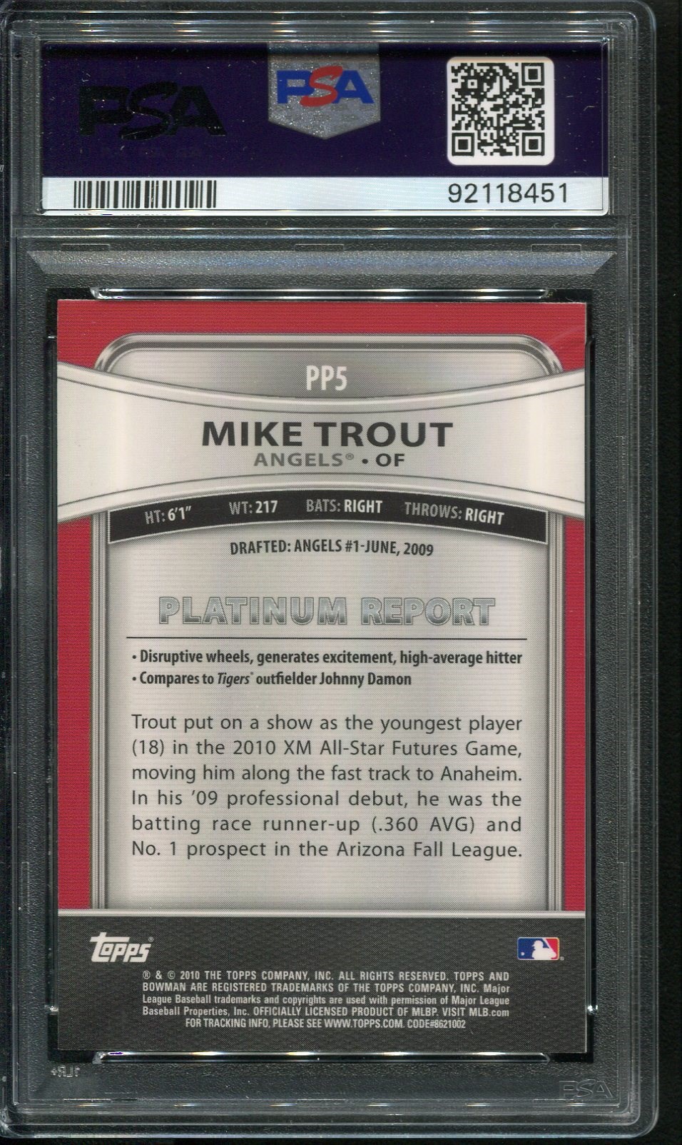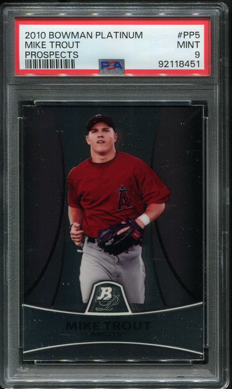 2010 Bowman Platinum Mike Trout RC #PP5 PSA Mint 9 - An affordable Trout rookie issue that comes in a scratch free PSA holder.
