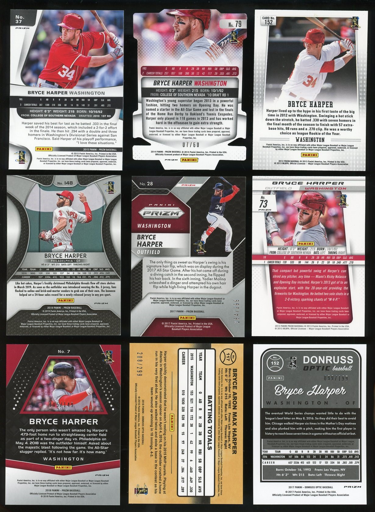Lot # 261: Bryce Harper Lot of 9 Different Panini Prizm & Optic Parallels