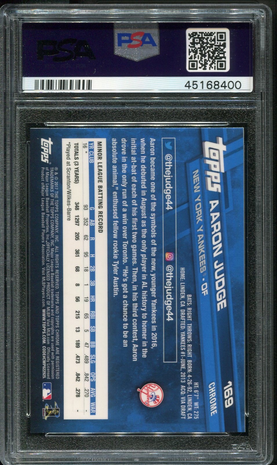 2017 Topps Chrome Aaron Judge RC #169 PSA Gem Mint 10 - This Topps Chrome Judge rookie is one of his most sought after cards. Every Yankee fan has to have a Judge rookie in their collection!