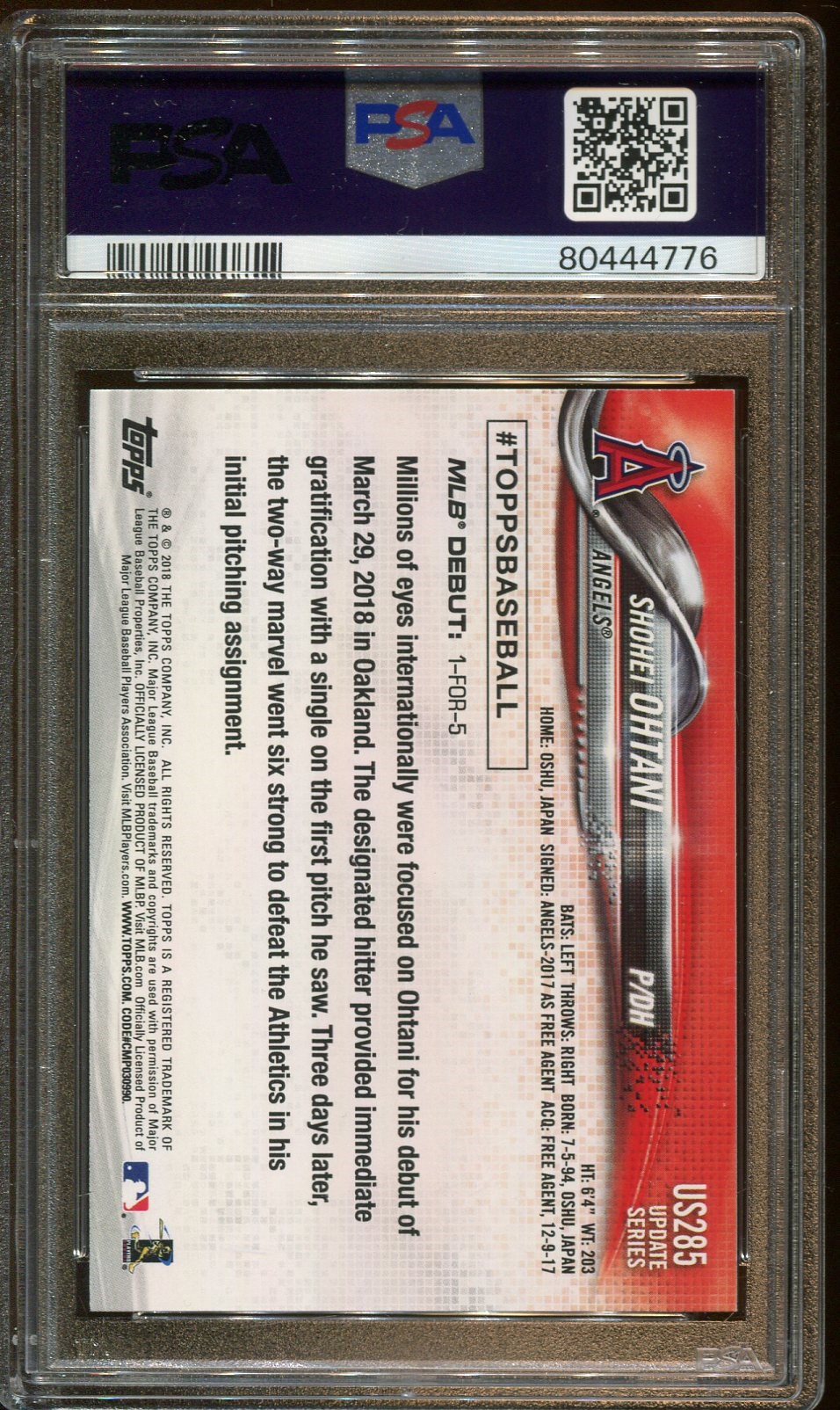 2018 Topps Update Shohei Ohtani RC #US285  PSA Gem Mint 10 - A high demand card that has seen substantial growth in value throughout 2025.  Card comes in a scratch free PSA holder.