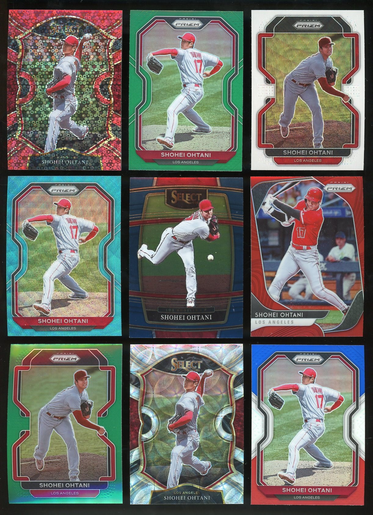 Shohei Ohtani Lot of 9 Different Panini Select and Panini Prizm Cards - All but one are the tougher parallel versions.  Eight are NM/Mt or better and one is EX/Mt.