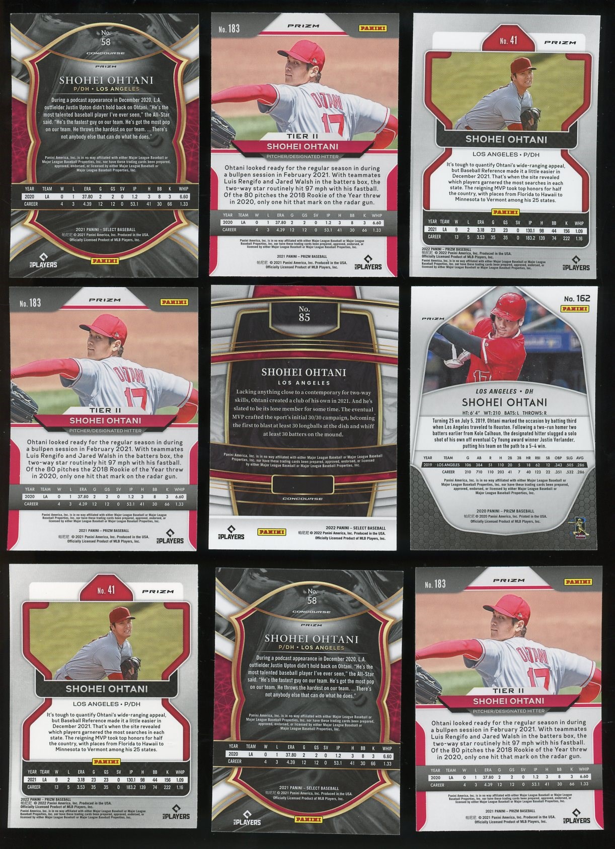 Lot # 285: Shohei Ohtani Lot of 9 Different Panini Select and Panini Prizm Cards