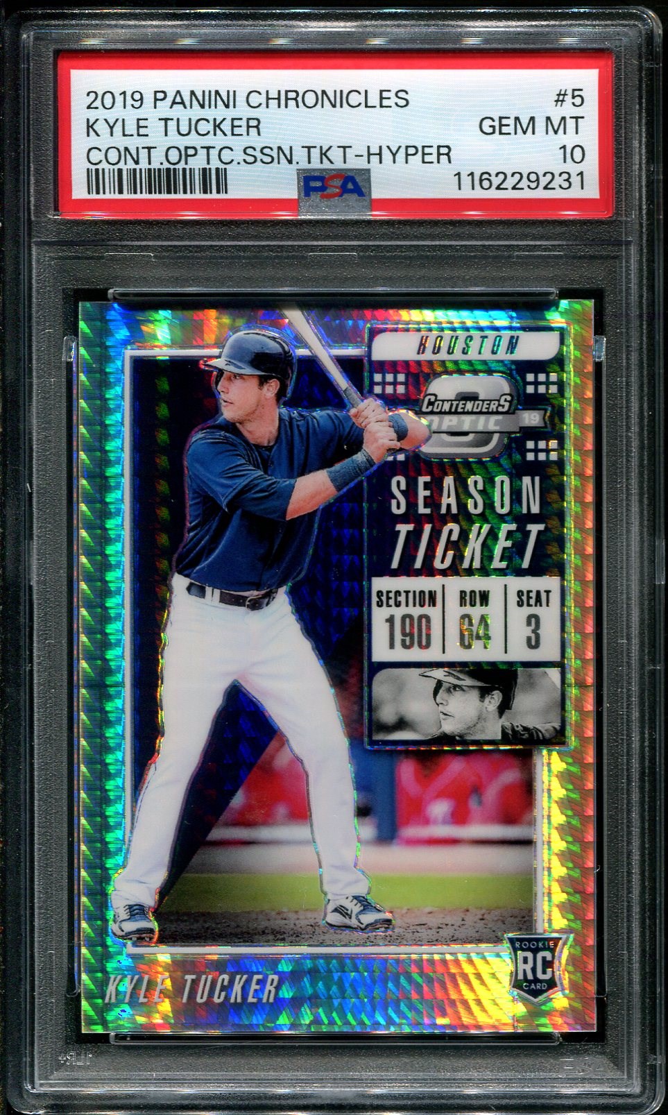2019 Panini Chronicles Contenders Optic Kyle Tucker Hyper RC #5 PSA Gem Mint 10 - Card has a PSA 10 population of just three, so don't let this one get away!