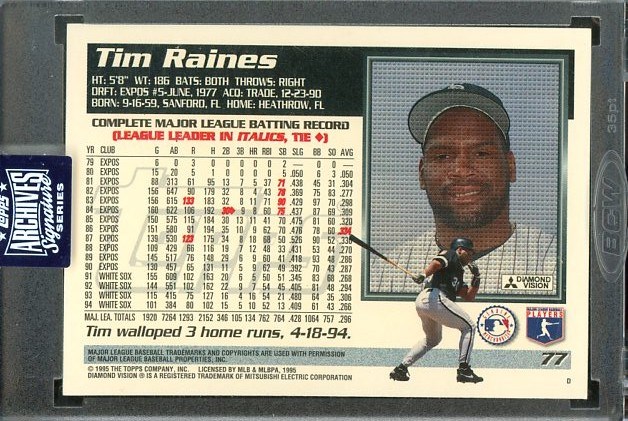 2020 Topps Archives Tim Raines Autograph 1/1 - A true one of one of Time Raines offered in the Topps Archives product. The card is still factory sealed and in NM/MT or better condition.