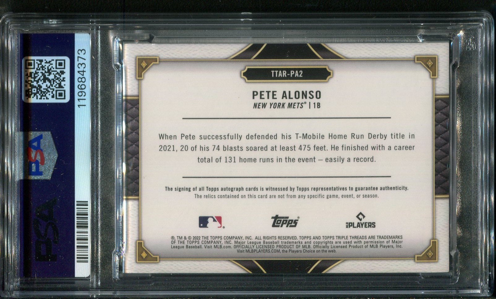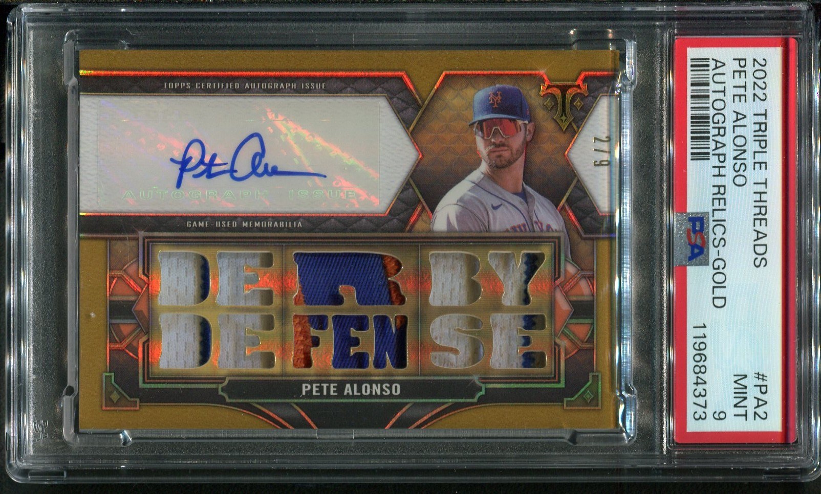 2022 Topps Triple Threads Pete Alonso 12 Piece Relic Autograph Gold #'d/9 PSA Mint 9 - Card was recently graded and comes in a new PSA holder.