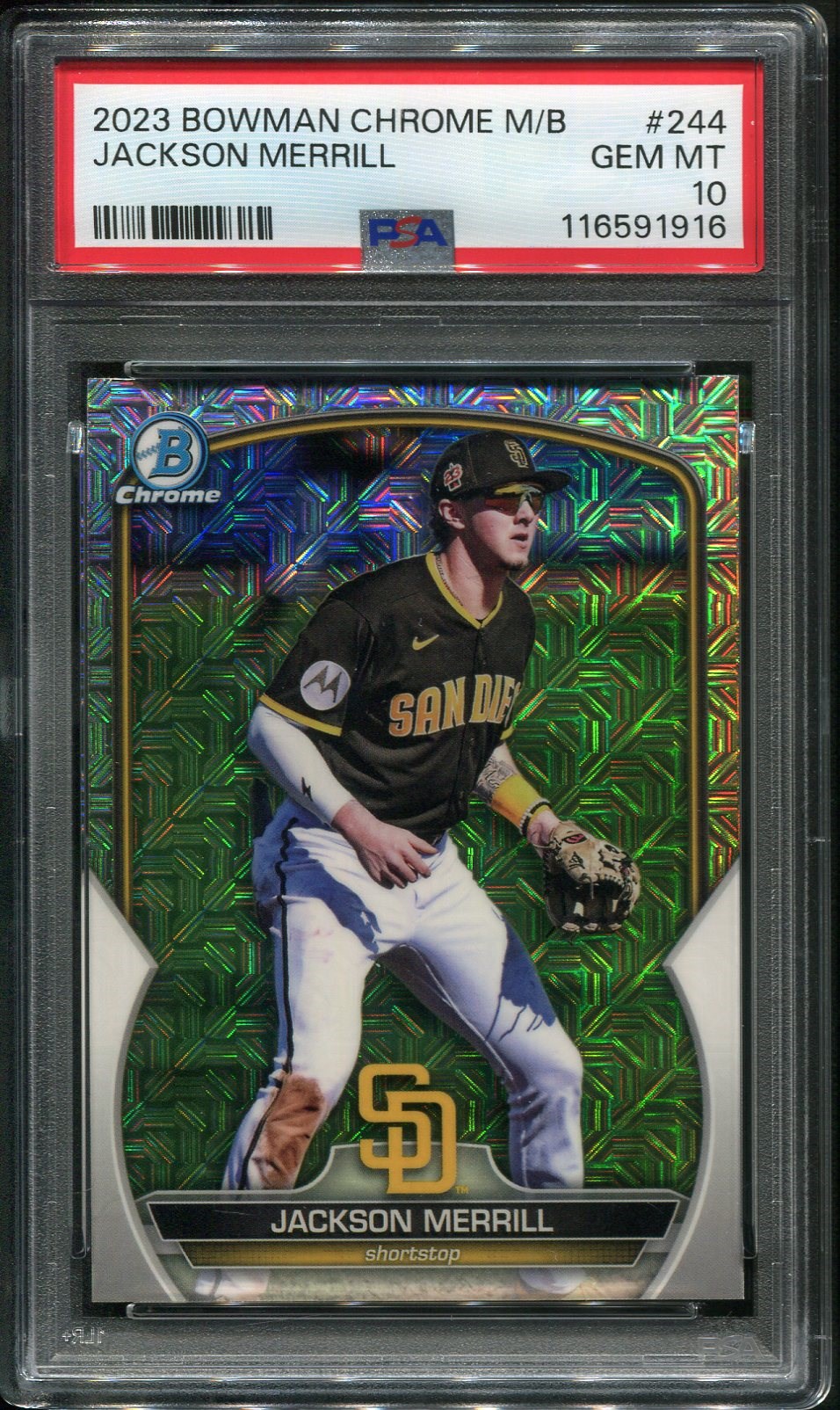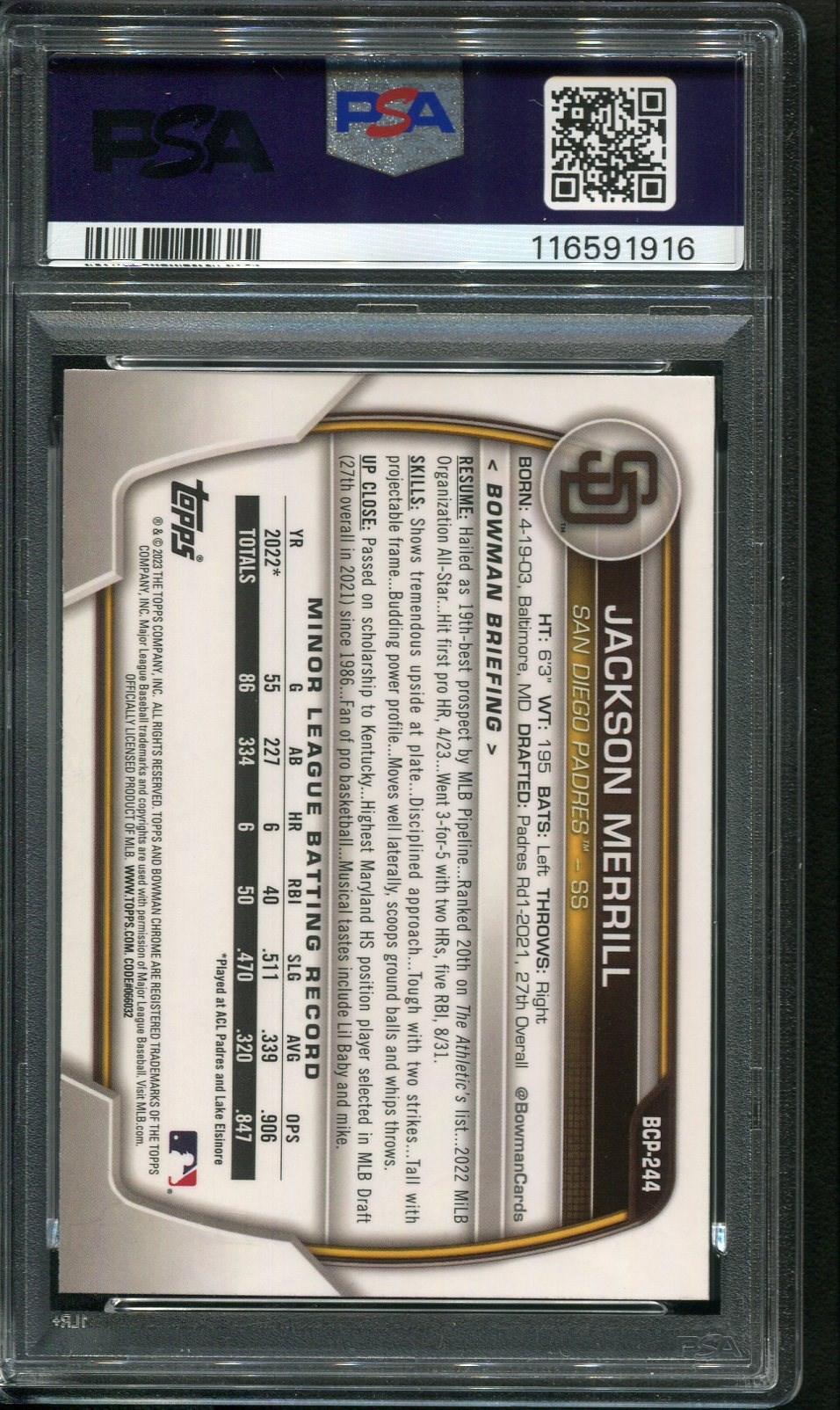 2023 Bowman Chrome Mega Box Jackson Merrill RC #244 PSA Gem Mint 10 - Card was recently graded and comes in a new PSA holder.