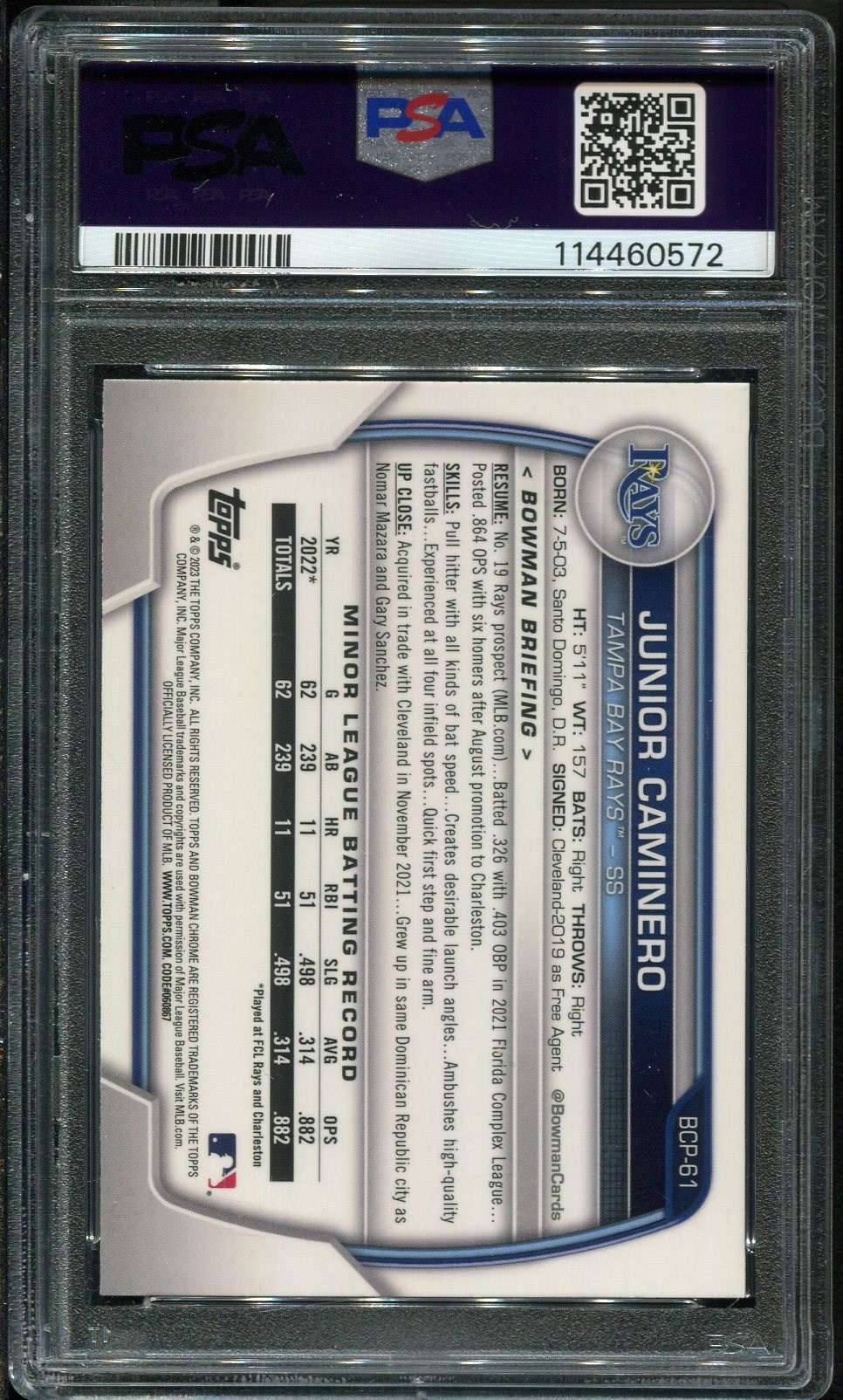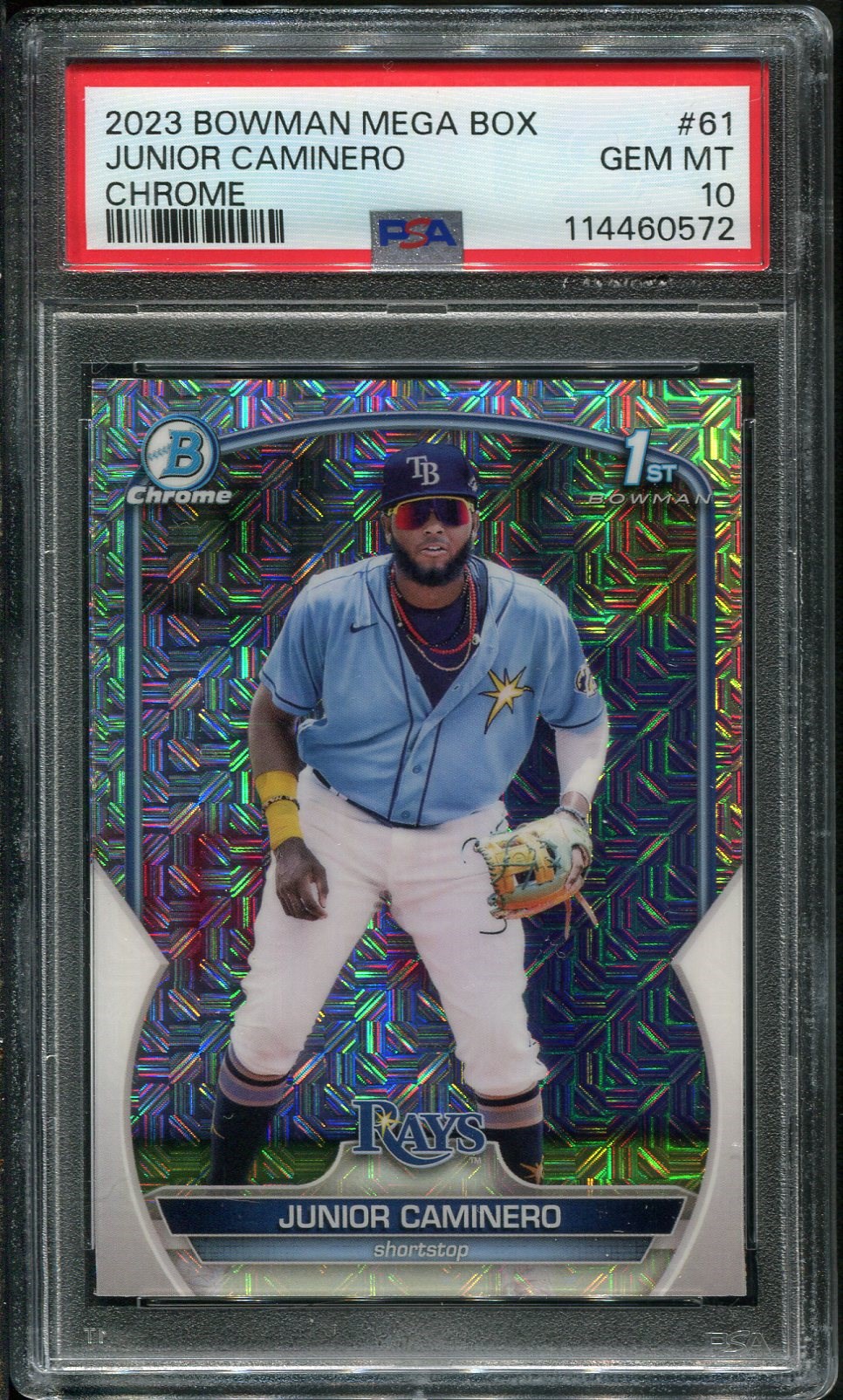 2023 Bowman Chrome Mega Box Junior Caminero RC #61 PSA Gem Mint 10 - Card was recently graded and comes in a new PSA holder.