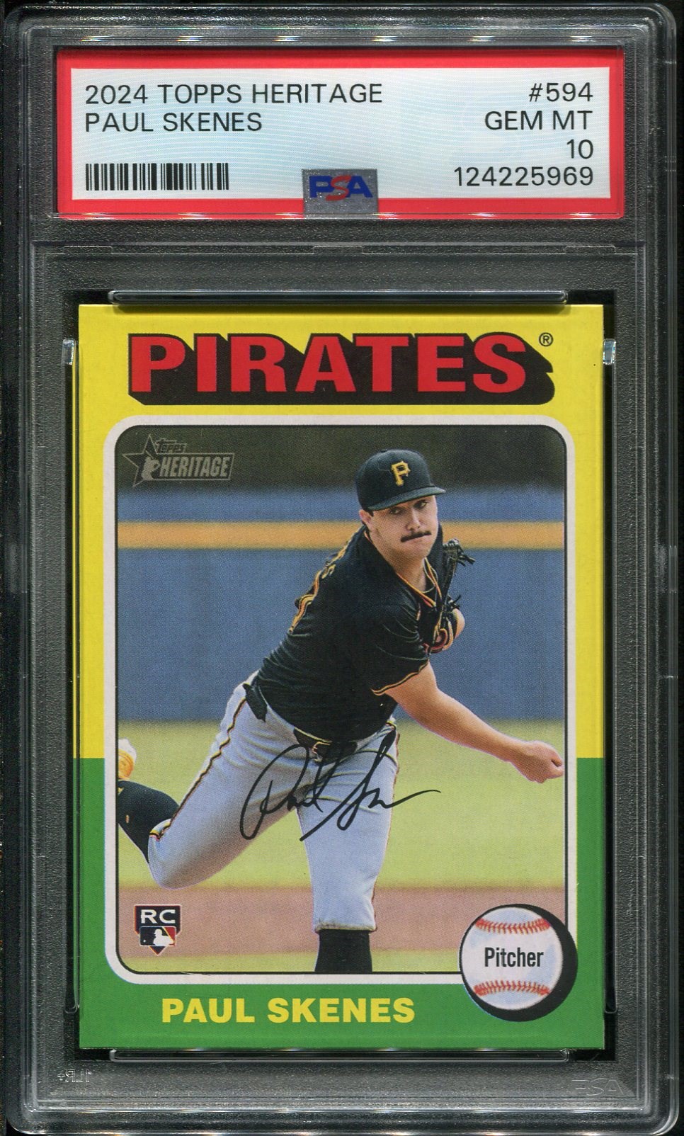 2024 Topps Heritage Paul Skenes RC #594  PSA Gem Mint 10 - Collector's showed strong interest in the 2024 Heritage '75 design, making this one of Skenes more sought after rookies.  Card was recently graded and comes in a new PSA holder.