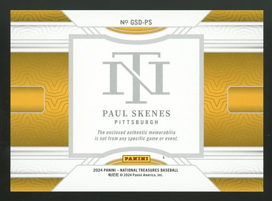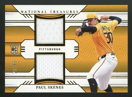 2024 National Treasures Paul Skenes Dual Rookie Jersey #GSD-PS  #'d/99 - Here is Skenes National Treasure rookie card featuring two jersey swatches and limited to just 99 made.  Card is NM/MT.