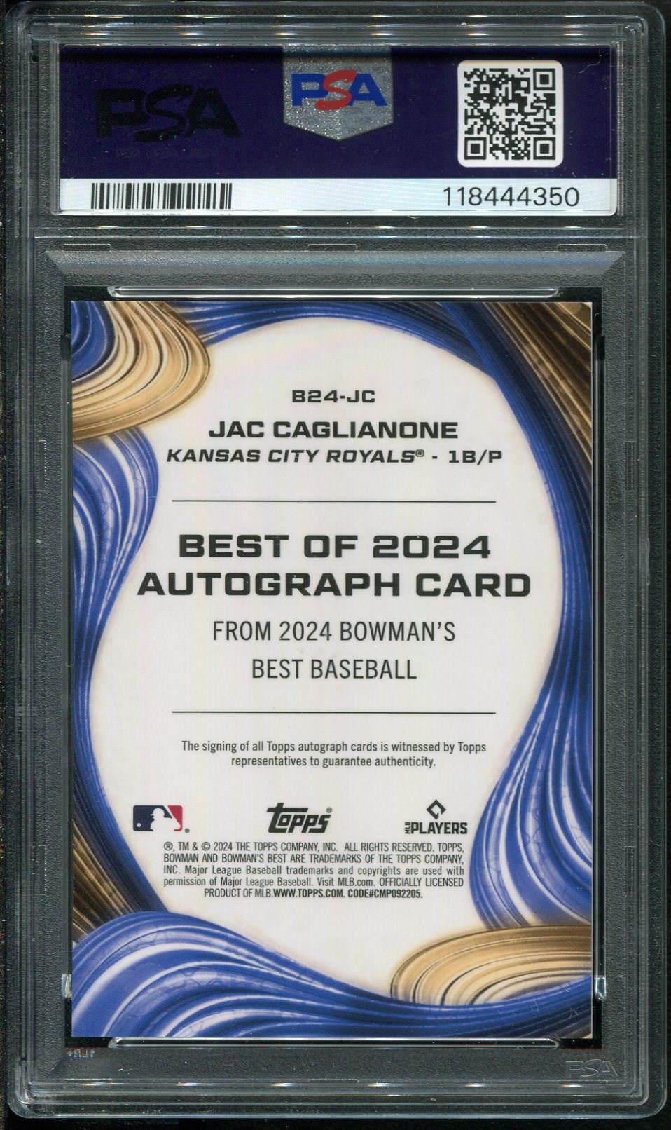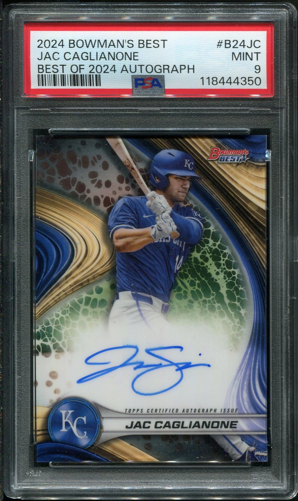 2024 Bowman's Best Jac Caglianone Best of 2024 Autographs PSA Mint 9 - A card with a lot of potential!  Card features an on card signature.