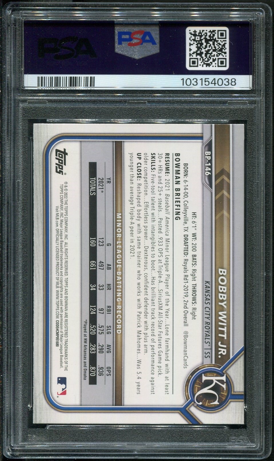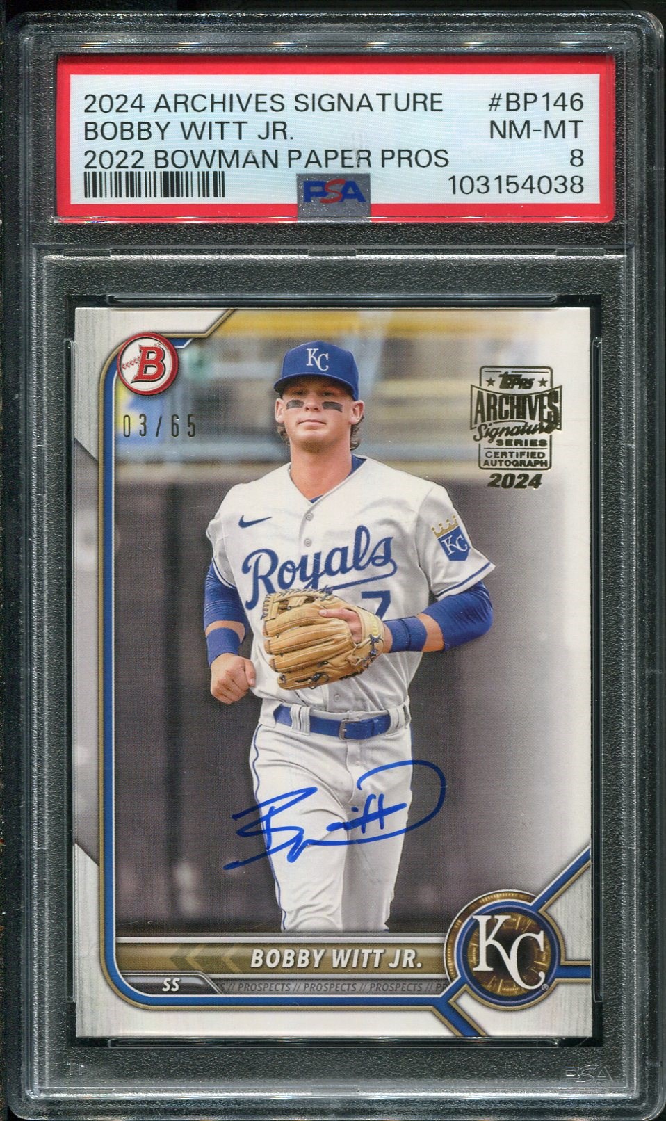 2024 Topps Archives Bobby Witt, Jr. 2022 Bowman Autograph #'d/65 PSA NM/MT 8 - A nice on card signature by Witt, Jr.