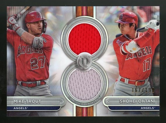 2024 Topps Tribute Shohei Ohtani/Mike Trout Dual Game Jersey Relics #'d/199 - What a combo! Two future HOFers on one card with a game used swatch from each player. Card is in great shape, NM/MT or better.