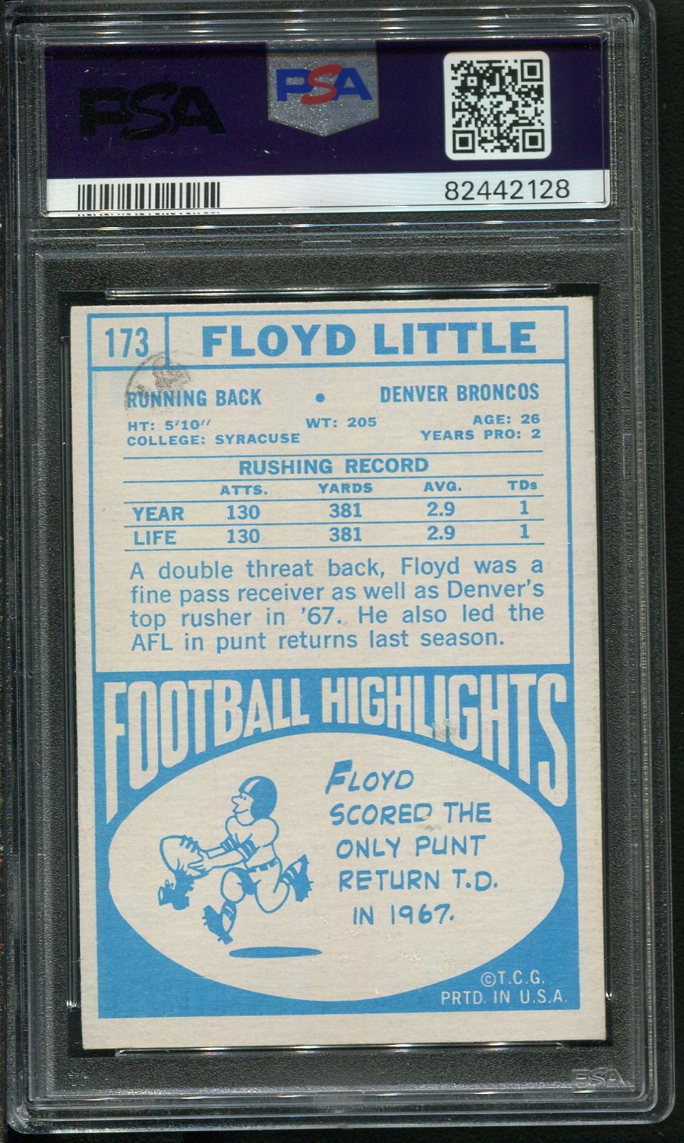 1968 Topps Floyd Little RC #173 PSA EX/MT 6 - Here is Little's rookie card from 1968 Topps. Little was a five time Pro Bowler and was elected to the Hall of Fame in 2010.